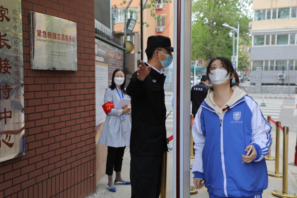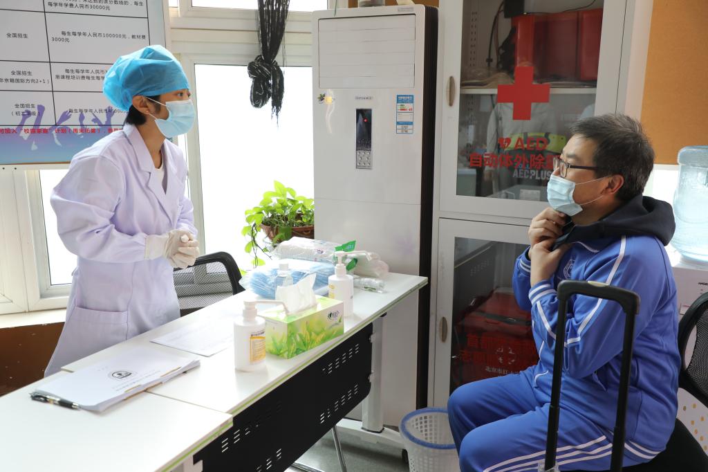 在工作人员的引导下,“学生”在学校门口监测点,依次通过出示健康二维码验证、测温等环节确认体温正常,方可进入学校,对体温异常情况提前做好预案,设置了临时观察室及时进行安置。“学生”入校后实行分流,保持间距1米,按照指定通道有序进校。