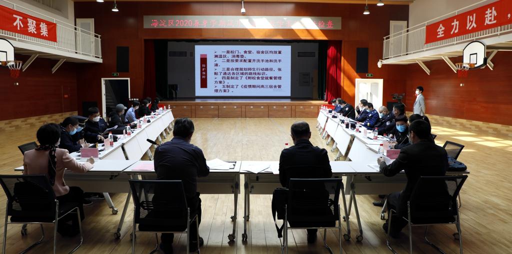 为认真贯彻落实上级教育部门和市委市政府相关精神,确保海淀区各学校疫情防控科学有效,试开学各项准备工作平稳有序,海淀区委区政府高度重视,责成各街镇、相关委办局深入学校开展评估检查。按照北京市统一部署,4月18日,评估检查组来到我校,就试开学教育教学条件进行综合评估检查。
