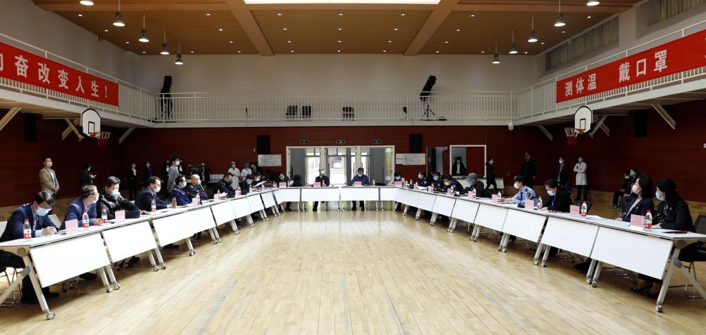 在试开学评估检查会上,史怀远对本次检查工作安排进行了相关介绍。随后,进入分组检查环节。评估检查组成员分成三组,对我校进行检查并填写评估检查表。组织保障组由唐建东带队,我校校长林卫民、校长助理王静负责对接。卫生防疫组由张鲁京带队,我校党总支书记张继军、副校长高雁鸣负责对接,综合治理组由乔梁带队,我校副校长杨磊、校长助理刘宏利负责对接。分别引领评估小组前往各自责任区域进行实地评估检查,各检查组指定专人在《评估检查表》相应位置打勾评价。现场检查时间为30分钟。各小组以最严谨的态度、最严格的标准对我校进行评估,并现场给予集中反馈。