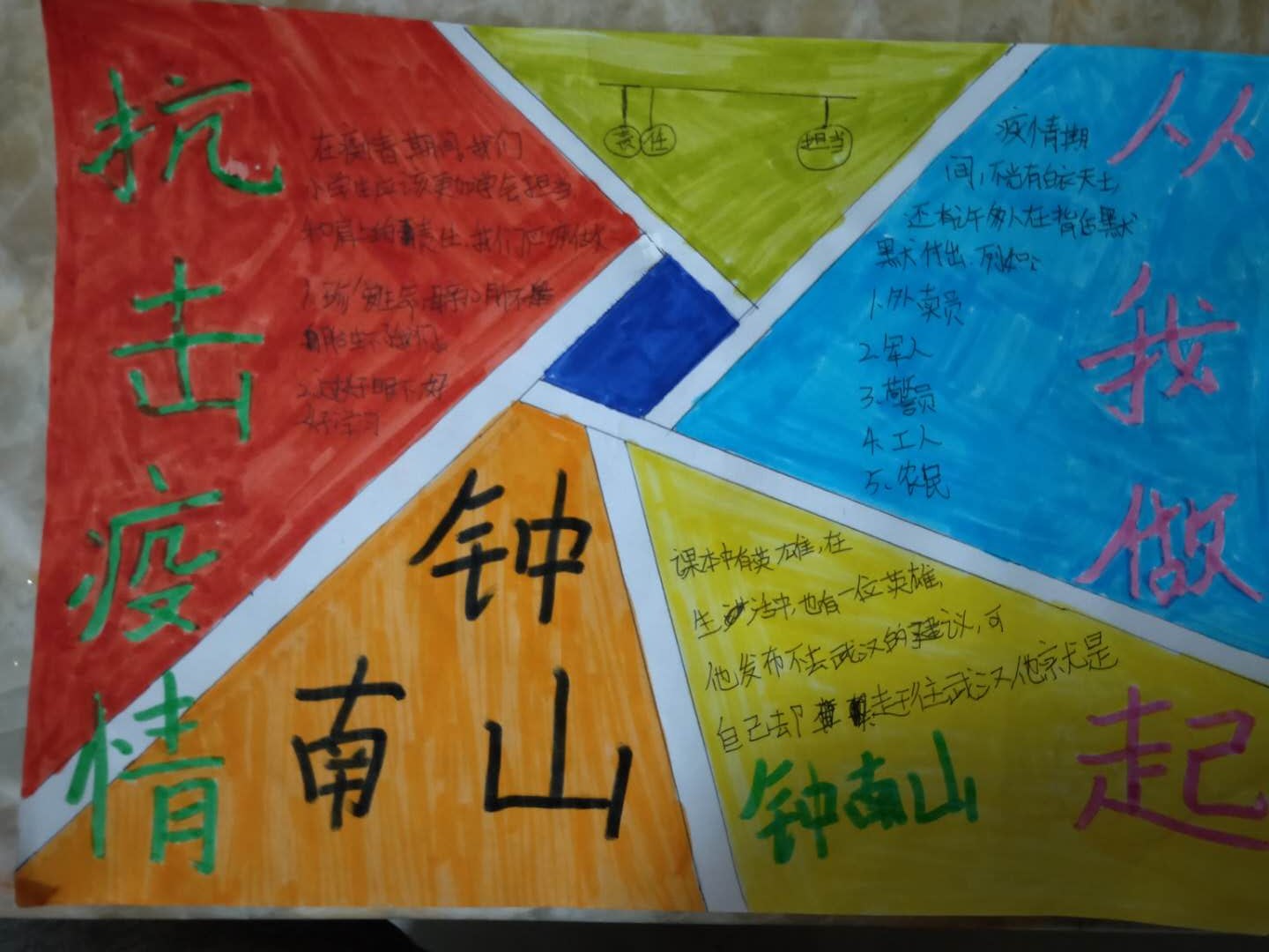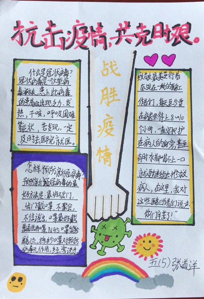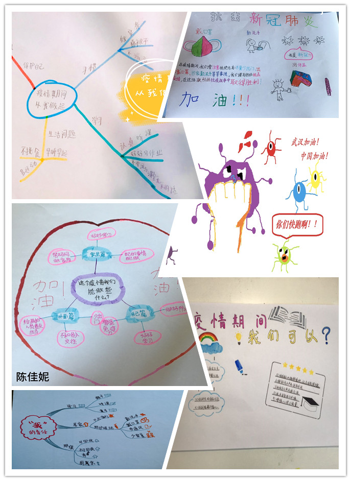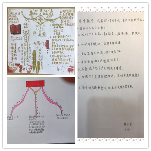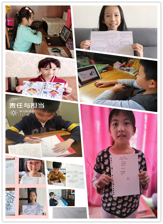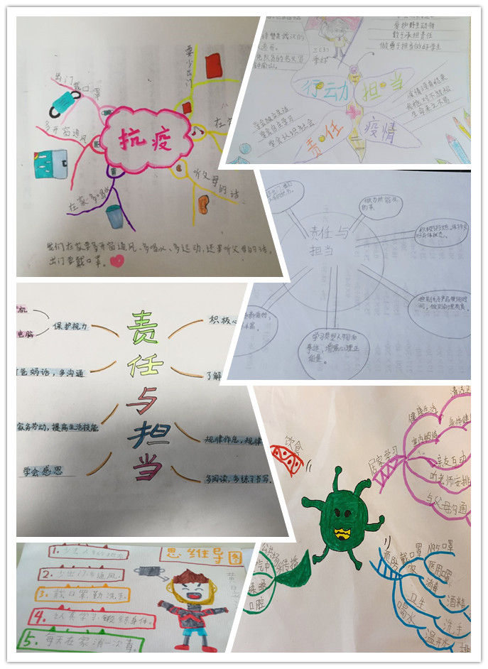 疫情期间,居家学习,孩子们也想做个有责任、有担当的人。他们用手抄报和思维导图的方式表达了在非常时期,自觉担起社会责任,不为防疫抗疫添乱,积极传播正能量的想法和做法。