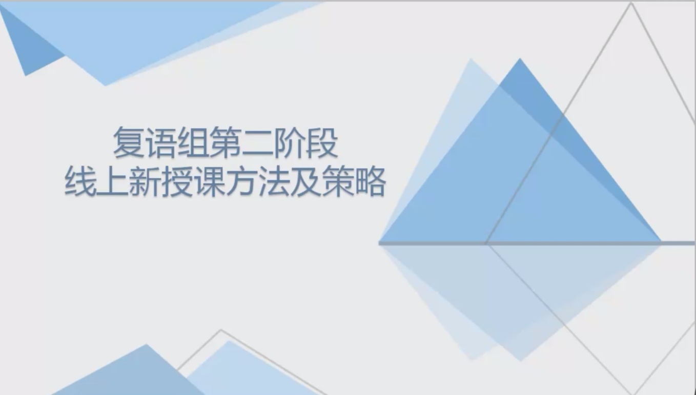 复语教研组组长曾菁敏在解读教材的基础上,分享了复语组在线上课堂互动和线上学生练习等的尝试。通过远程会议、语音通话、建立群组和活用投票功能等方式,复语组在教学中正在一步步克服线上教学中存在的困难。