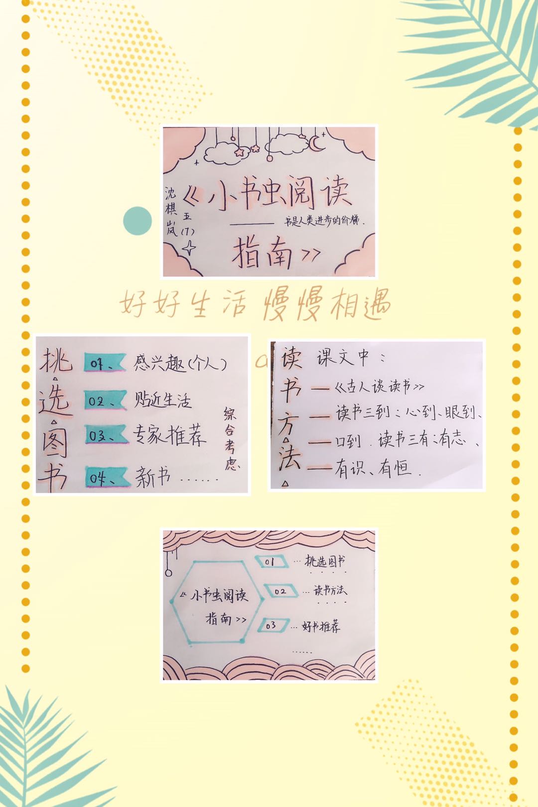 五年级的同学们都各自做着自己喜欢的阅读体验活动。有的同学制作图书海报,有的同学制作小书虫指南,给大家提供阅读小妙招,还有的同学把美妙的好词佳句记录下来,并有情感地朗读起来。