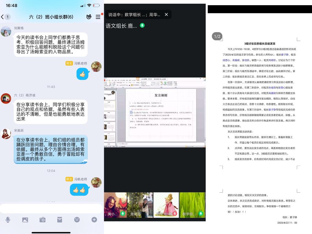 六年级开展了“同读一本书”班级读书会活动,活动中同学们围绕一个话题展开讨论,对名著进行重读,解构文本的同时引用原文证明自己的观点。此次活动不仅锻炼了学生们的语言表达能力,还让他们对一本书有了更加深入地理解,发展了思维,提升了认知。