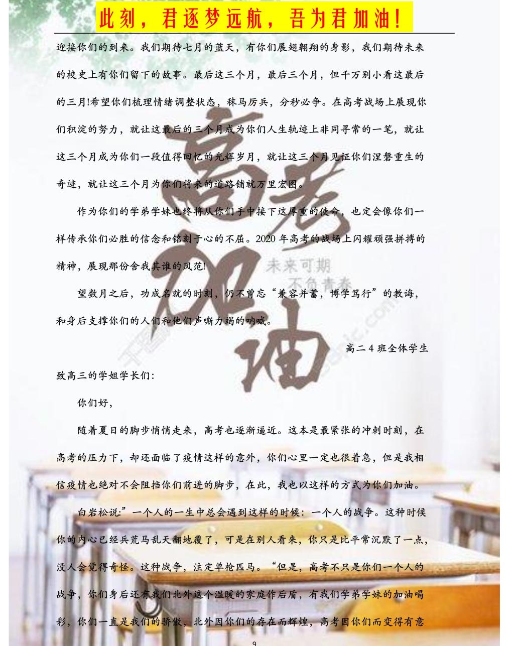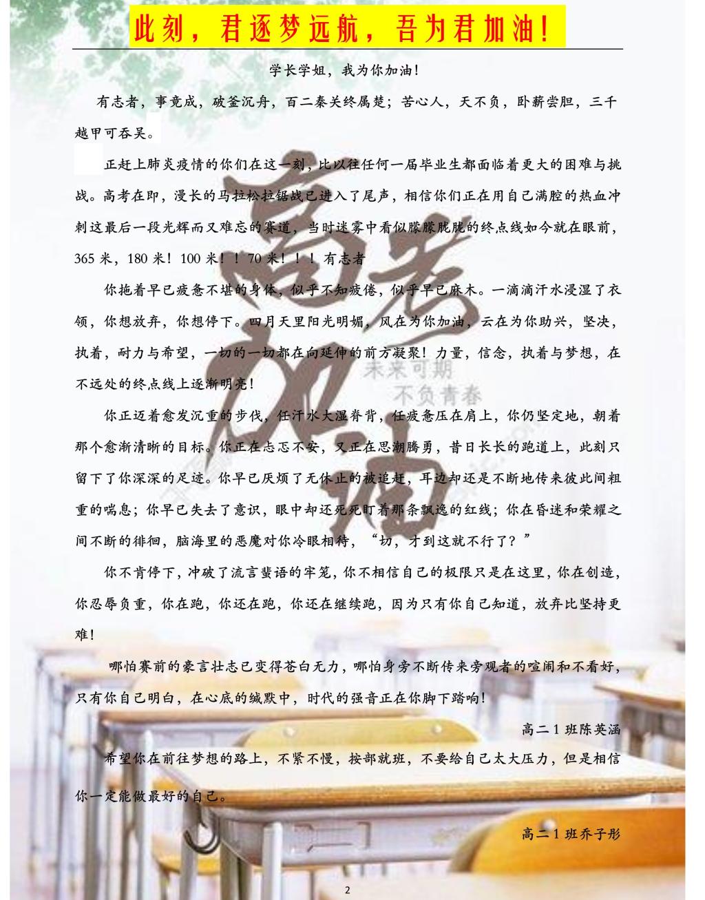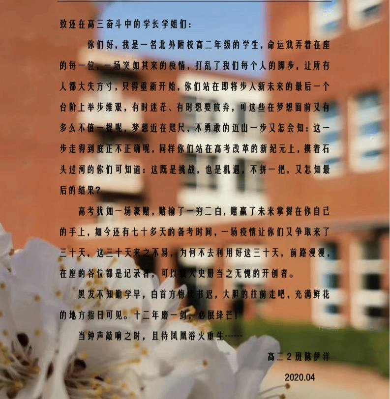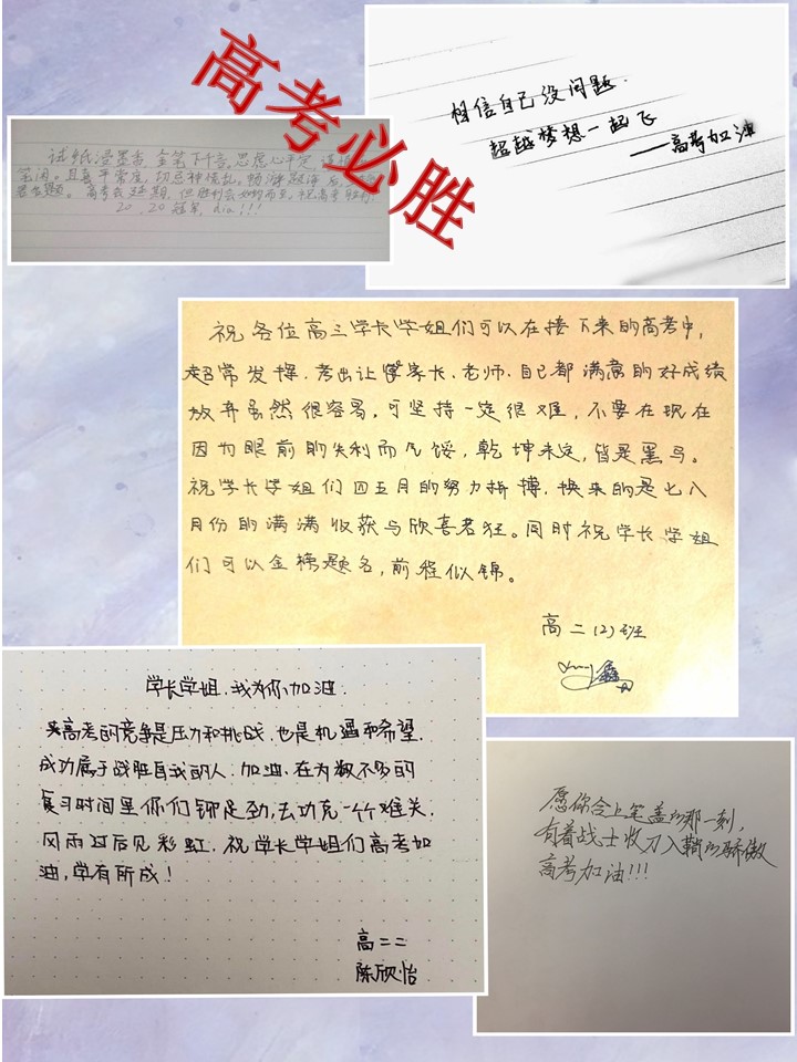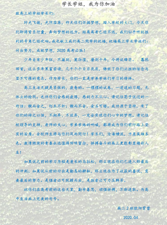 高二年级学弟学妹的拳拳之情、深深祝福
