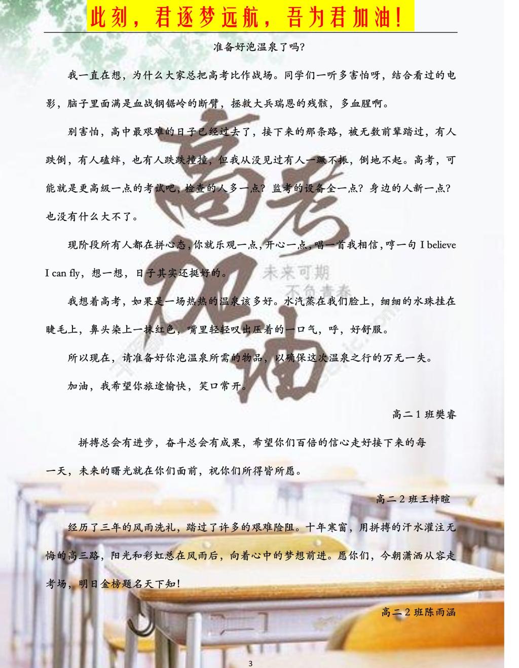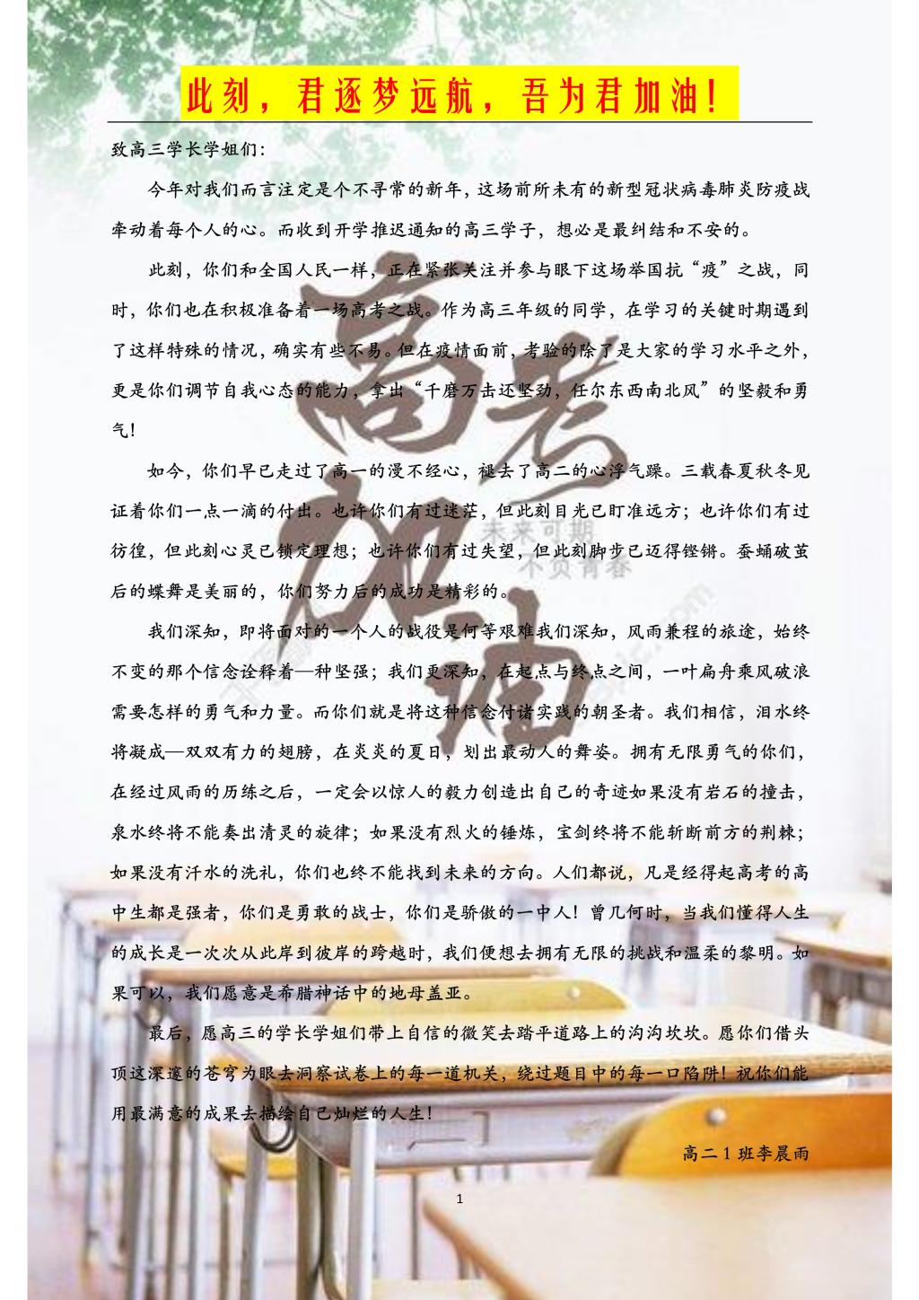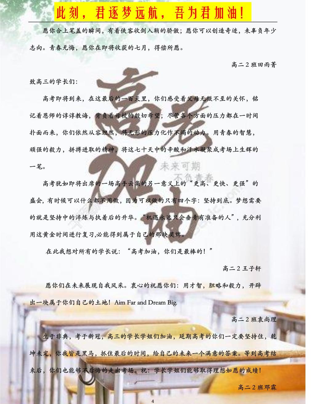 高二年级学弟学妹的拳拳之情、深深祝福
