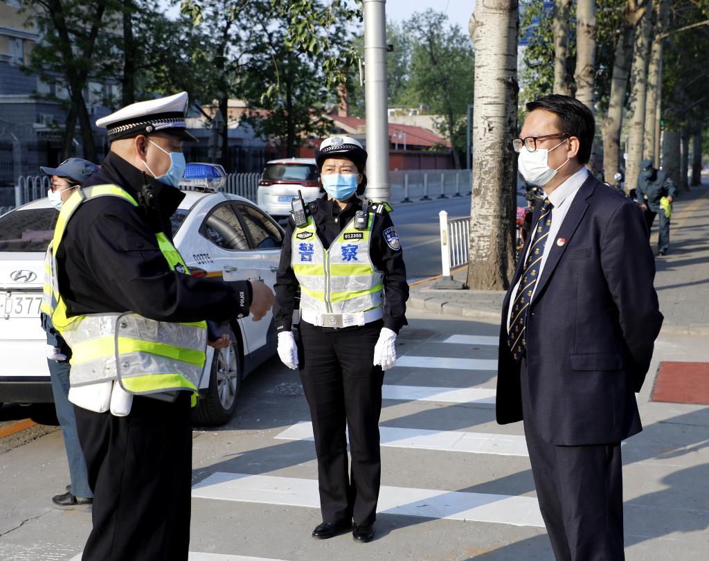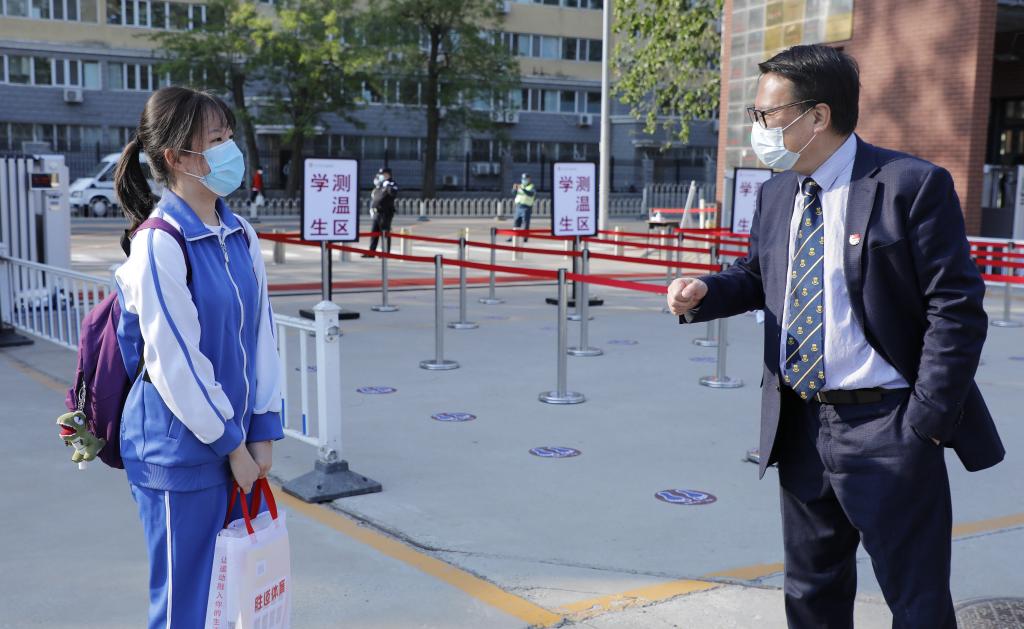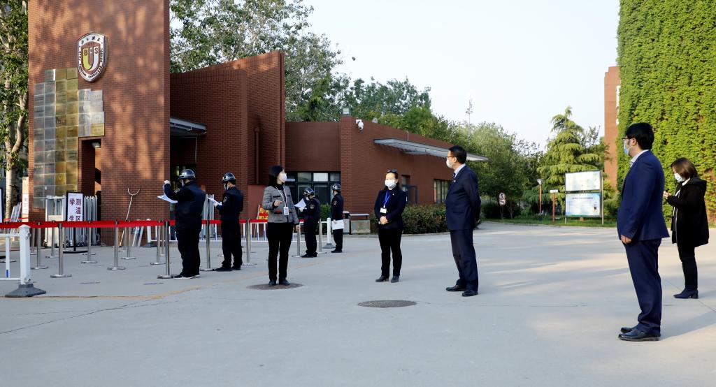 在经过一个前所未有的漫长“假期”后,4月27日,我校高三年级师生重返校园。为了迎接同学们“回家”,我校校领导、高三教师、值班老师、保安、海淀区民警一早就在门口等候大家的到来。