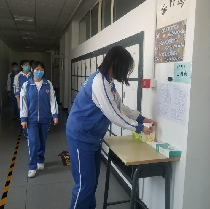 住宿学生按指定路线,保持间距离开宿舍区。早晨由生活指导老师进行日常测温,有序排队洗漱。学生离开后,由专职消毒人员对宿舍进行全面消毒。