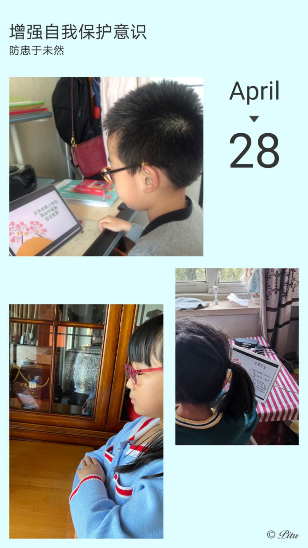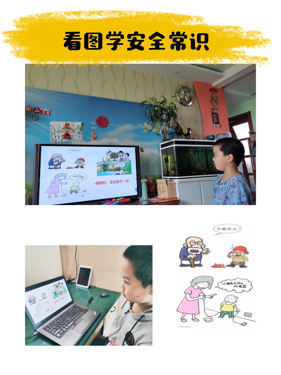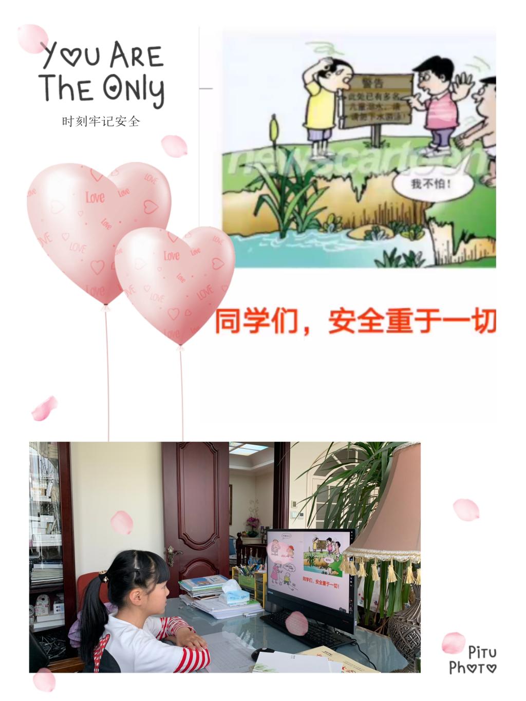同学们从交通安全、防火、防溺水以及用电安全等多方面了解安全常识,通过看卡通图片、说一说等形式将“自觉遵守交通安全规则”“不到河边等危险地方玩耍”“不玩火,不玩电器”等安全常识内化于心,外化于行动。本次安全教育活动还融入了防疫安全学习,提醒同学们勤洗手,尽量少出门,出门要佩戴好口罩,不聚集,尽量远离人群,度过一个平安快乐的小长假。