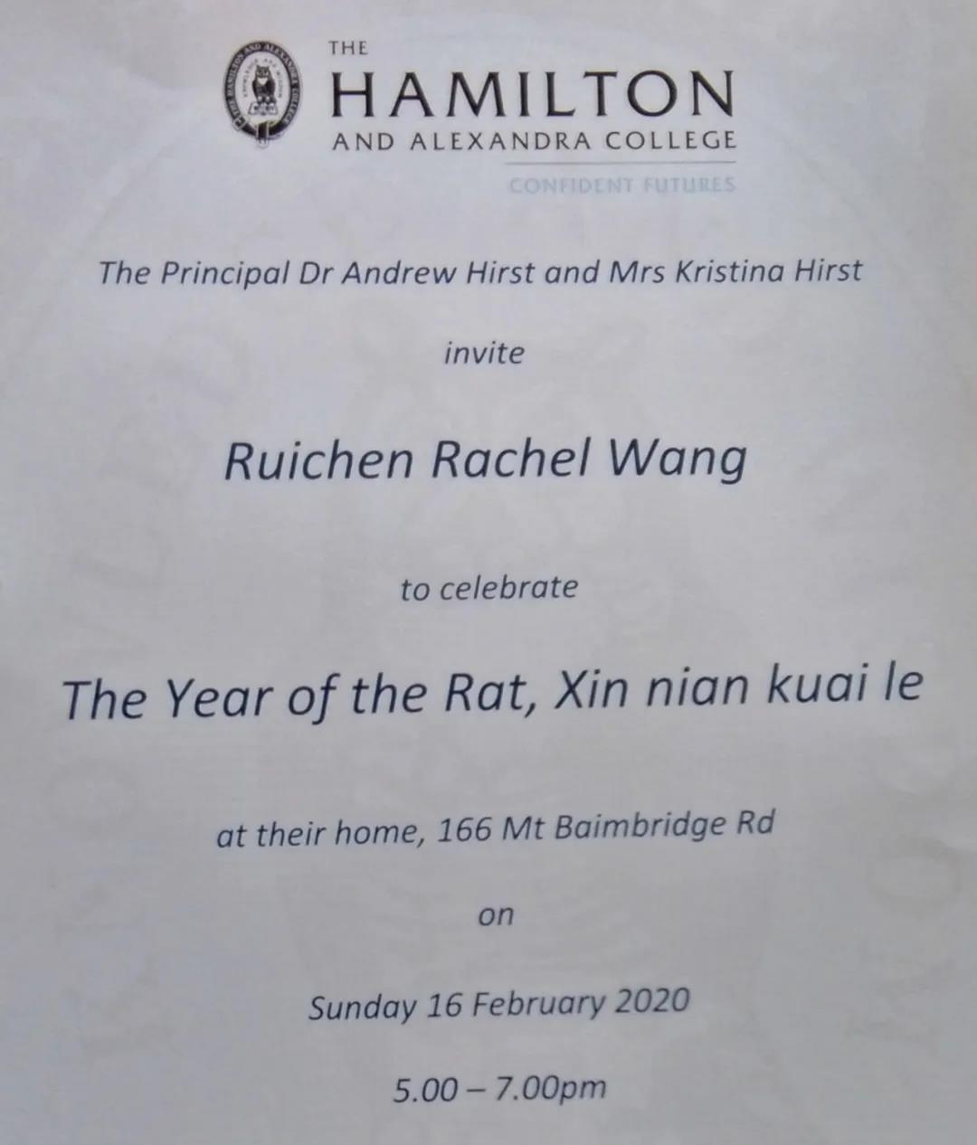 校长是个很友善的人,他能记住全校每一个同学的名字和特长,这一点让我特别敬佩。他每年都会邀请中国的学生及老师们去他家庆祝春节,今年我们也收到了他的邀请函,还收到了校长亲自包的红包。