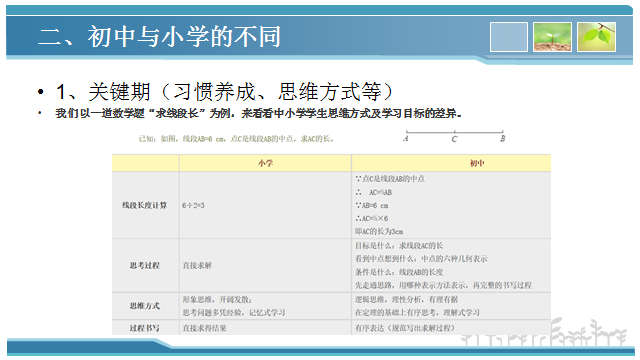 会上,杨磊作了主题为“成为更好的自己”讲话。结合当前社会时事,杨磊首先分享了疫情中的思考,强调教育的使命与教育者的责任与担当。接着,他以数学题“求线段长”为例,向家长介绍了初中阶段教育教学、学生学习和中考测评的特点,说明中小学学生思维方式及学习目标的差异。针对初中与小学的不同,杨磊分别从中小学衔接、假期安排、计划制定、能力提升和体育锻炼等方面解答了“我们能做哪些准备?”的疑问。