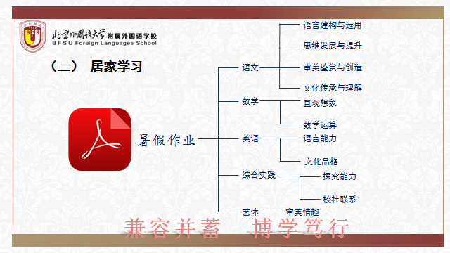 初一年级部主任朱强以“以‘疫’为书,起航2020”为主题,分别从教育教学、年级管理、学生生活、暑期生活和入学教育等角度,带领新生家长深入了解即将开始的初中生活。朱强用“一日安排”将学生在校的学习、生活呈现给学生家长;用“简易口诀”强调暑期居家的健康防护,用“物品清单”理清学生入校流程与准备;用“暑期计划”帮助学生预热初中生活。