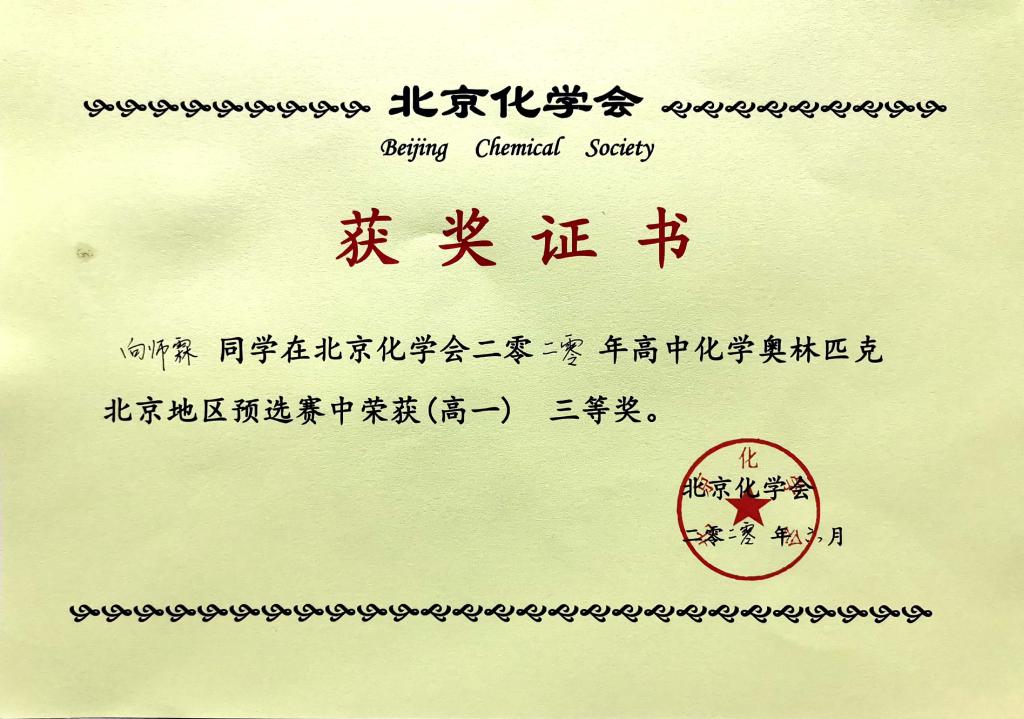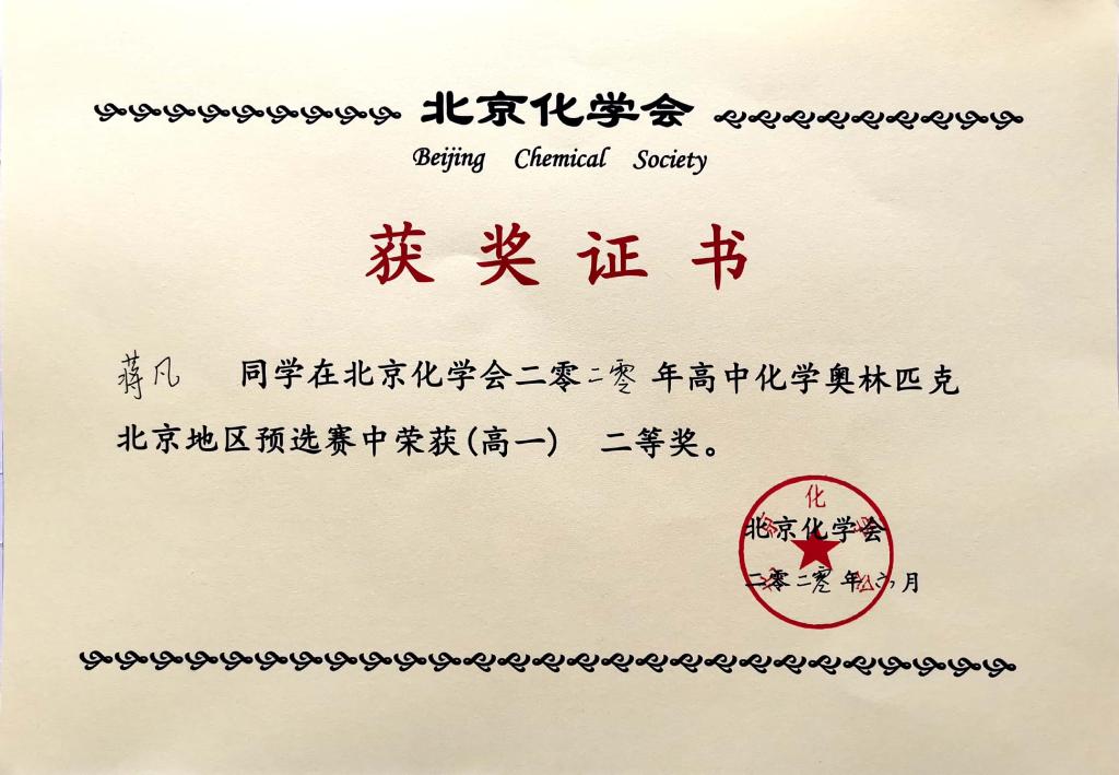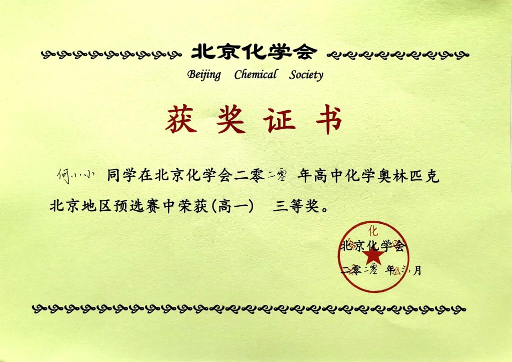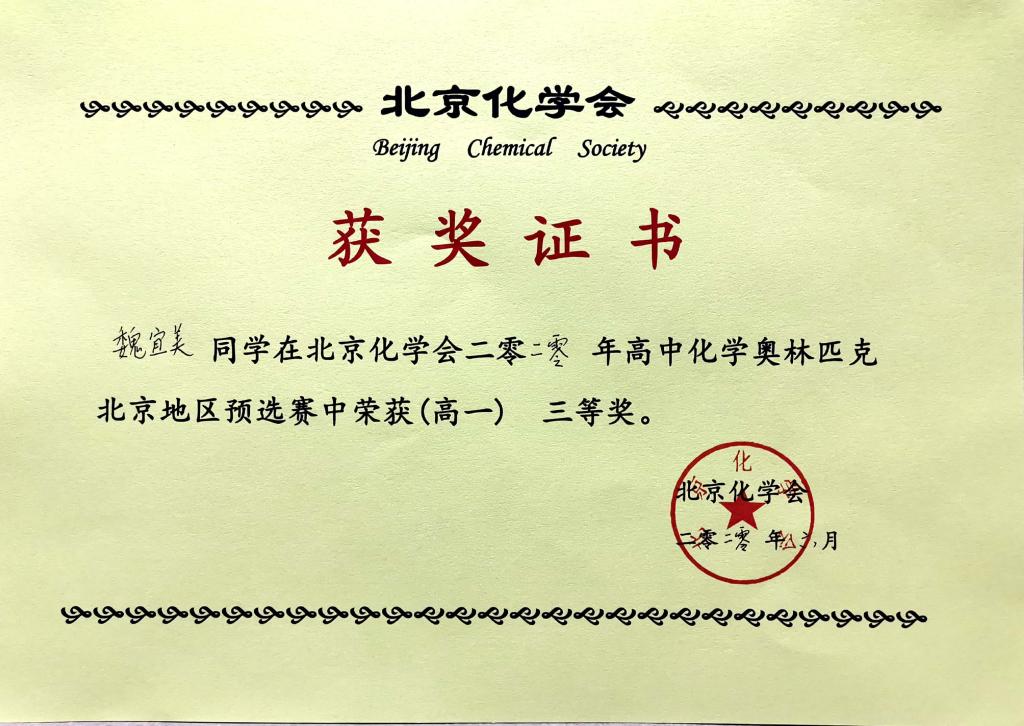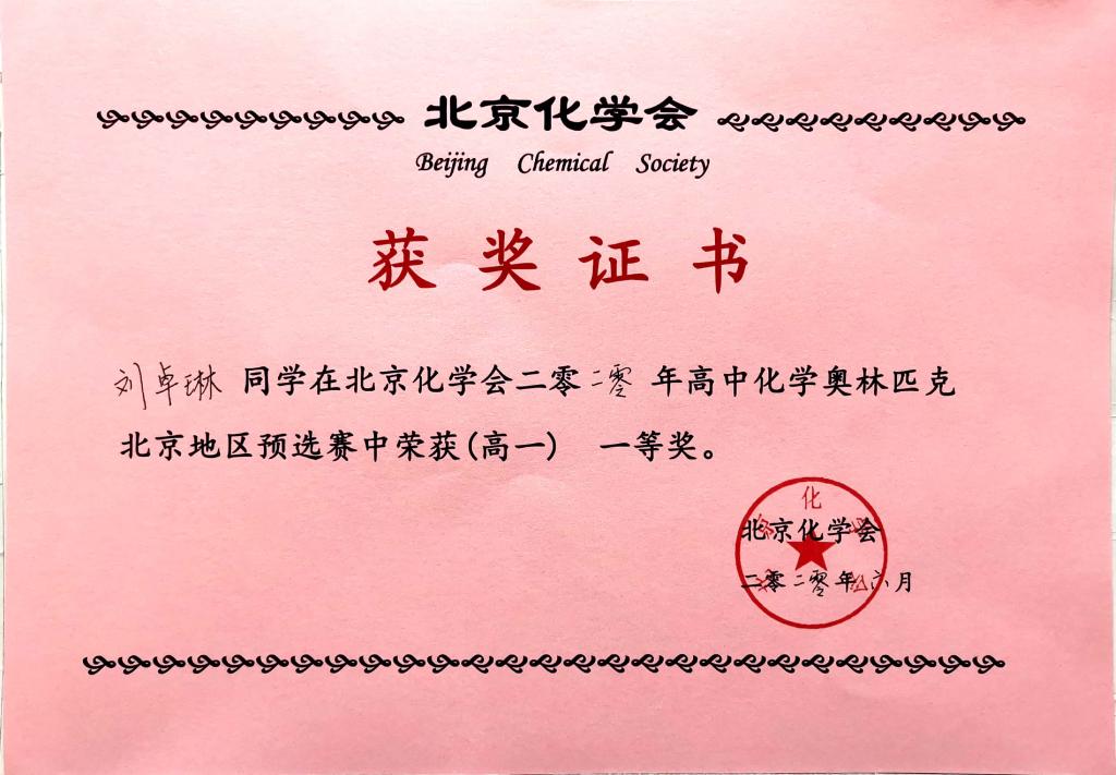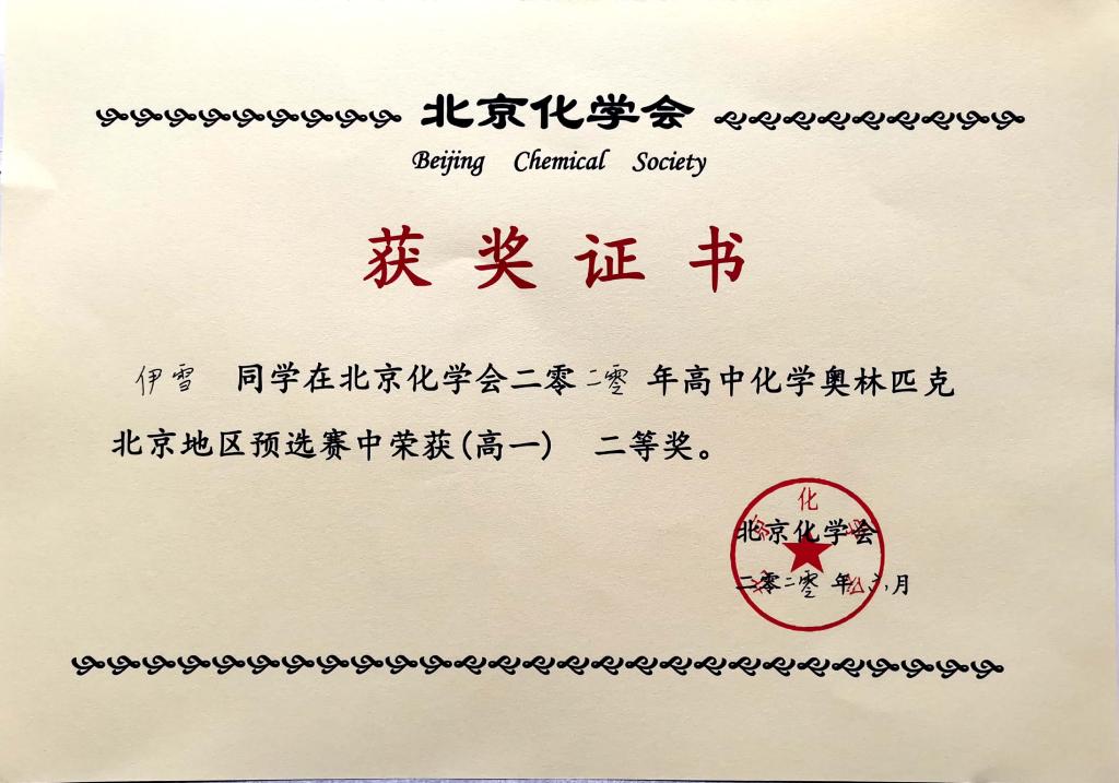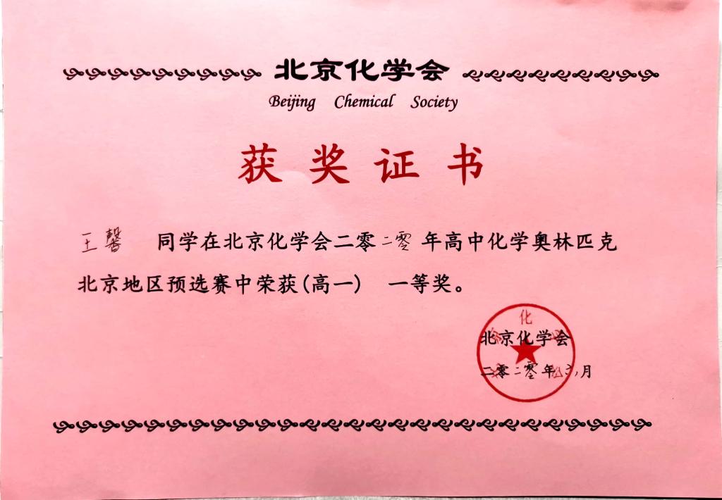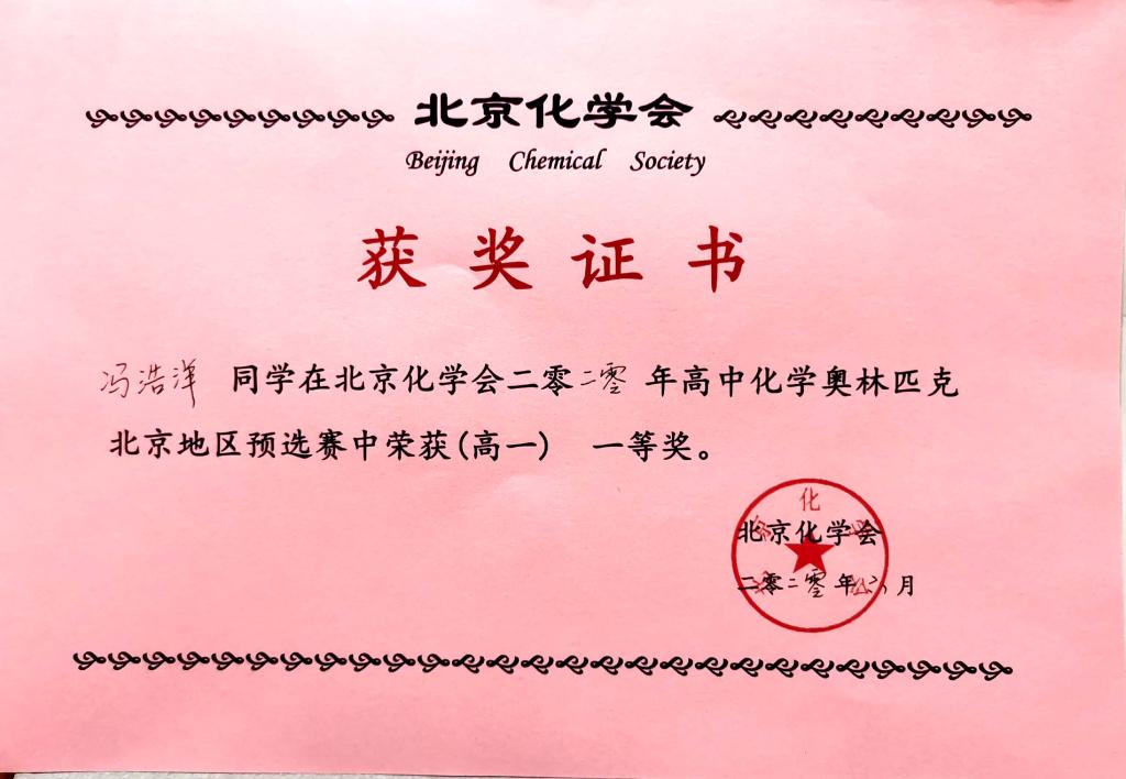 7月27日,2020高中化学奥林匹克北京地区预选赛成绩揭晓。我校高一年级共28名学生报名参加此次比赛,经过紧张角逐,9名同学在众多选手中脱颖而出,其中,冯浩洋、刘卓琳、王馨3名同学获得一等奖;伊雪、刘静怡、蒋凡3名同学获得二等奖;魏宜美、向师霖、何小小3名同学获得了三等奖。杨继臻老师获优秀辅导教师奖。
