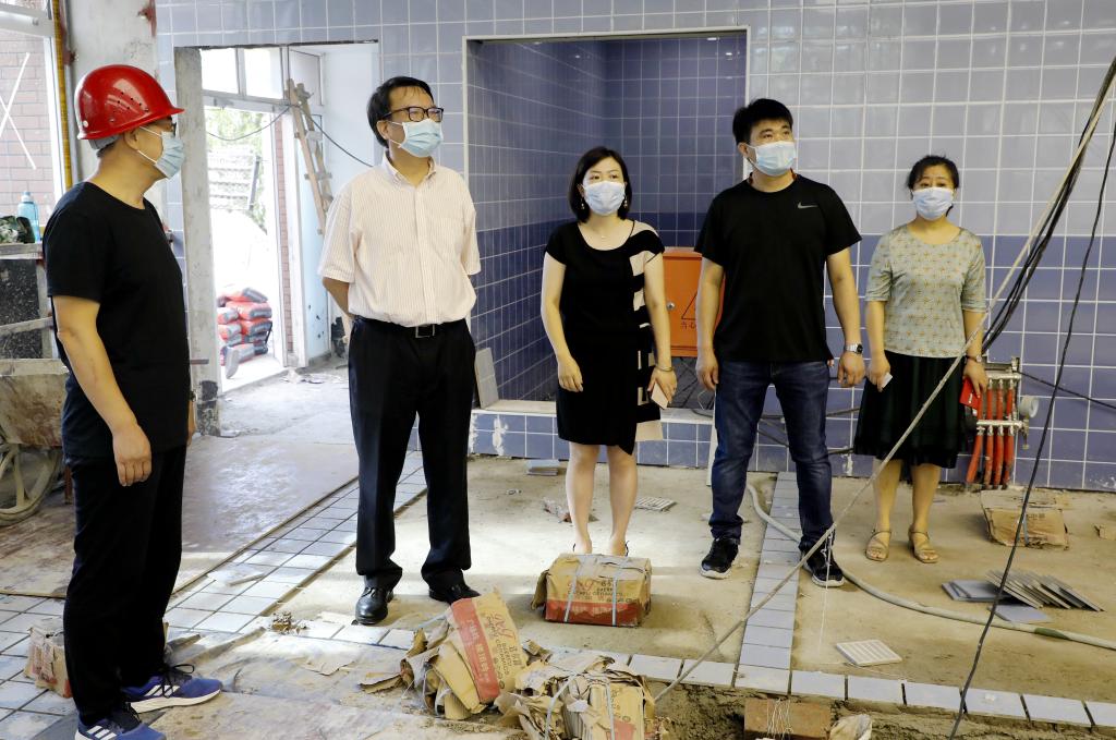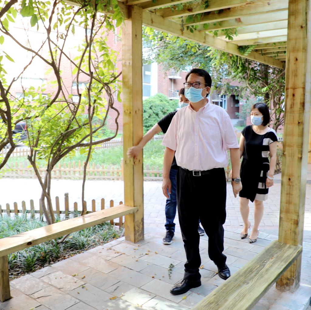 林卫民一行先后来到社区办园点、图书馆、医务室、田园牧场、游泳馆、舞蹈教室等地方,仔细查看了工程完成状况,听取了工程进度、施工质量和相关安全措施等方面的汇报,并对整个暑假尽职尽责、坚守岗位的工作人员表示感谢,叮嘱大家注意安全及防护。