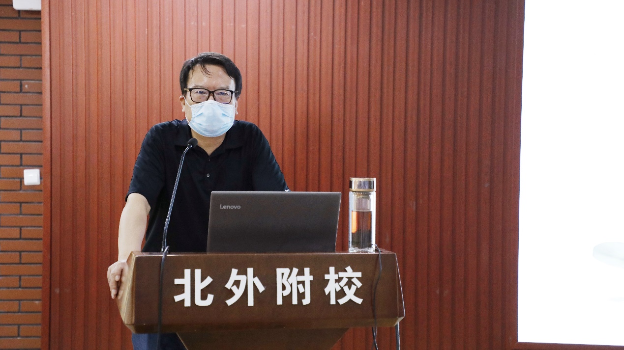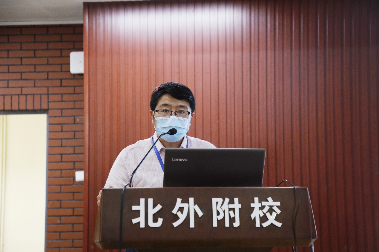 林卫民校长以《积极应对“基础教育高质量时代”的新挑战》为题,就做好新学期以及后续的教育教学和学校管理工作,提出加强党的领导、坚定理想信念等五方面要求。林卫民指出,当今时代是基础教育进入高质量发展的新时代,也是我校教育进入高质量发展的新阶段,提高质量是全校各个方面、各个环节的时代主题,希望全校教职工都能围绕“质量型发展”主题,高质量完成各项工作。林卫民根据新学期新思路,详细解读北外附校新学期教育路线,为全体教职员工指明了方向,并强调要贯彻落实中央办公厅、国务院办公厅等文件精神,认真研究北京市新课程、新中考政策,全面提高办学质量,全校上下应当继续秉持朴素的教育情怀,崇尚简约生活,培育仁爱之心,锤炼高贵品格,要牢牢树立“立德树人”的任务意识,将“立德树人”作为每位教育工作者的事业内核,从而实现初中教育教学工作的卓越发展与质变。
