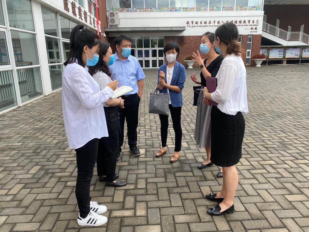 为确保海淀区幼儿园疫情防控科学有效地进展,秋季学期安全有序开园,8月31日上午,海淀区2020-2021学年秋季开学督导检查组莅临我校指导,就新学期办园点疫情防控、开园前的准备工作以及教育教学条件进行综合评估检查。我校党总支书记、副校长张继军,小学执行校长刘宏利,小学副校长孟娜等校领导陪同检查。