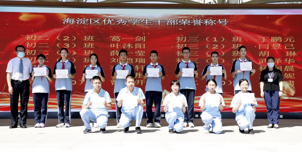青年一代有理想、有本领、有担当,国家就有前途,民族就有希望。为进一步发挥“榜样引领”作用,共青团海淀区委员会决定授予我校叶沐阳等14名同学2019—2020学年海淀区“优秀学生干部”荣誉称号。林卫民与张继军为学生现场颁发了获奖证书。