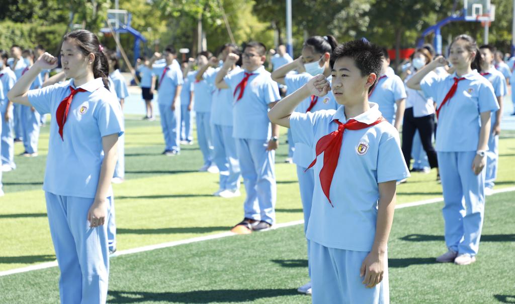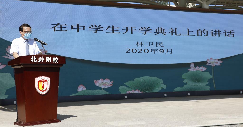 虎步奔腾开胜景,秋风浩荡展鸿图。夏日的热度尚未消退,我们又回到了九月的校园。沐浴晨光,充满了新学年的期望,迎接2020—2021学年第一学期开学典礼。9月1日上午,我校举行以“教育向未来,成长在当下”为主题的初中开学典礼。国家督学、研究员、我校校长林卫民,党总支书记张继军,副校长高雁鸣,副校长于苒,副校长、初中执行校长杨磊,小学执行校长刘宏利,党总支委员、小学副校长李琳,行政中心主任谭畅,宿管中心主任李洪杰,家长代表董华女士等校领导、嘉宾出席,初中校区全体师生参加,活动由校团委书记潘铎轩主持。
