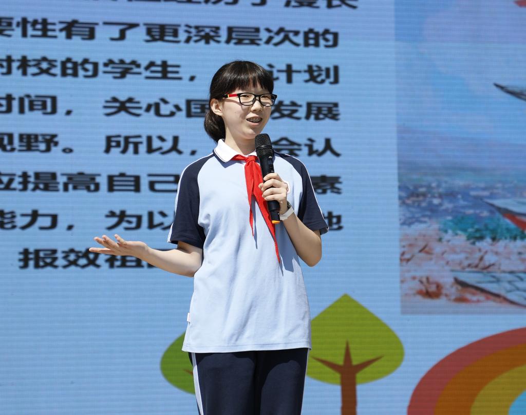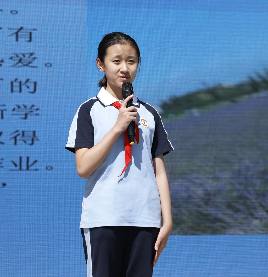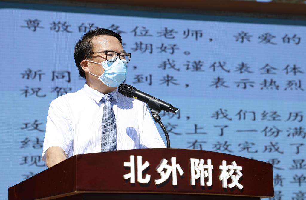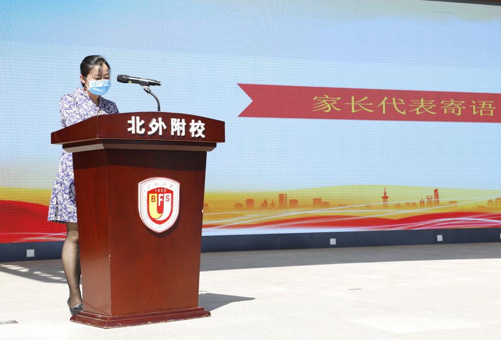 学校的发展离不开家长的支持,初三年级学生家长董华女士作为代表进行了发言。董华回顾了刚刚过去的一学期,并表示疫情当前,同学们从自我做起,以实际行动防控新冠疫情,在老师们的带领下,适应新环境,创新学习方式,克服重重困难,圆满的完成了学习任务,在此为北外附校的同学们和老师们点赞。作为家长,为学生们的茁壮成长感到无比自豪,也为我的孩子能在北外附校学习感到无比庆幸。