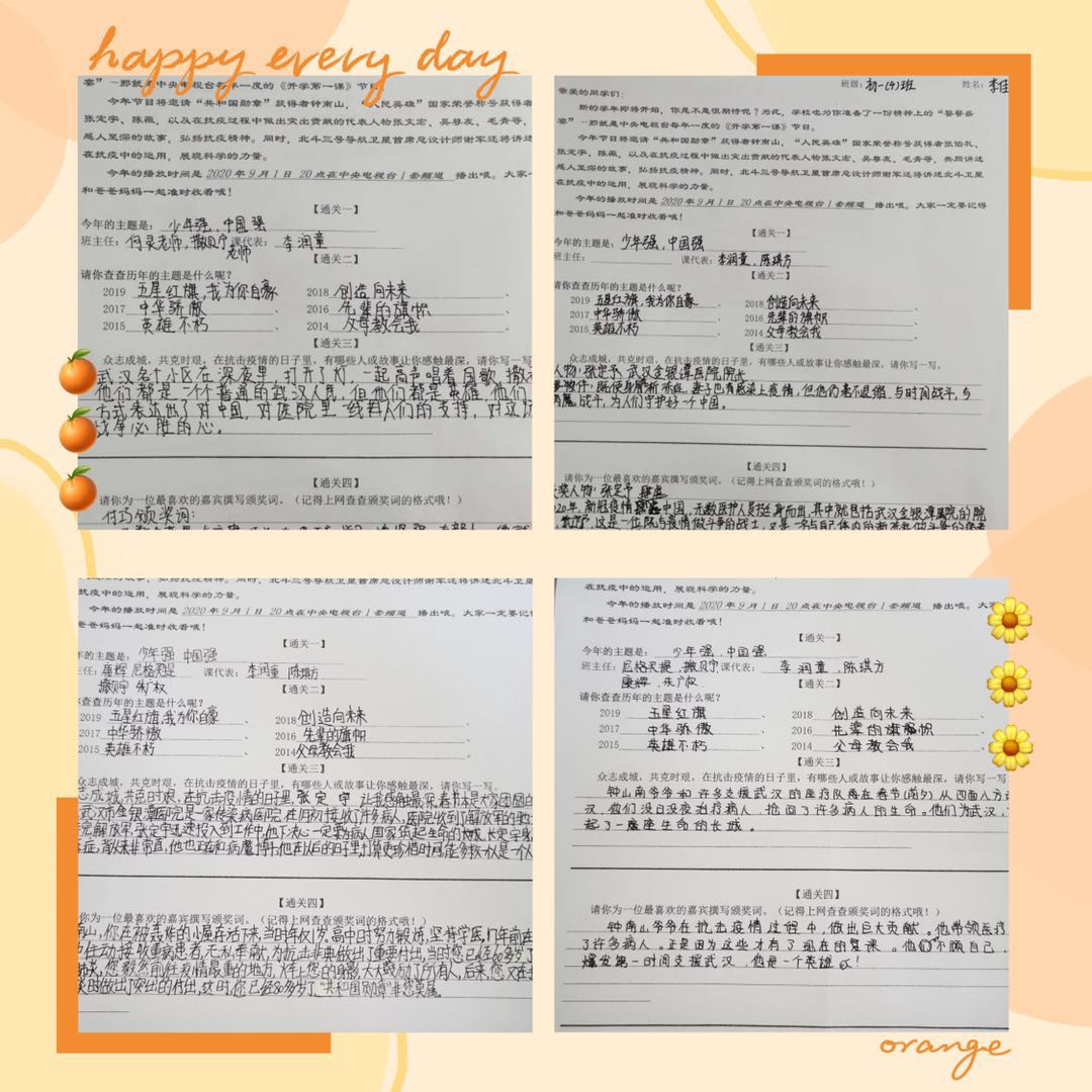 我校将《开学第一课》作为理想信念教育和开学教育的重要组成部分。校团委第一时间向各年级和班级通知了《开学第一课》播出时间及频道并精心制作活动任务单。本学期校团委将陆续通过主题班(团、队)会、主题升旗仪式、观后感汇编合集展出、演讲比赛和社会实践等丰富多彩的团队活动,将爱国主义教育与理想信念教育落实到青少年学生的日常生活中,引导学生结合实际,传承好、弘扬好爱国主义信念、科学精神以及抗疫精神,鞭策年轻一代要勇挑重担,在国家需要时挺身而出。
