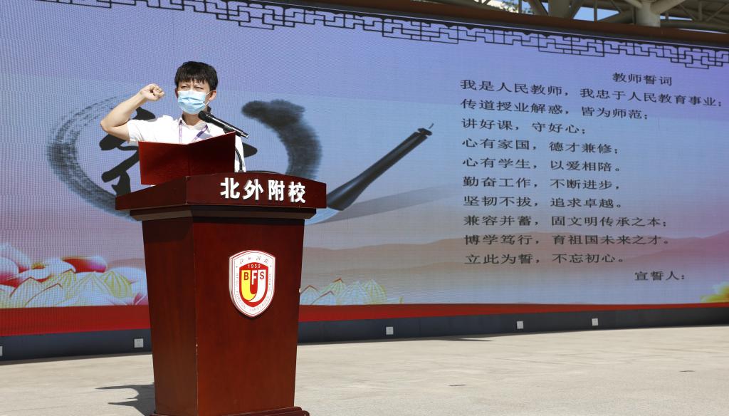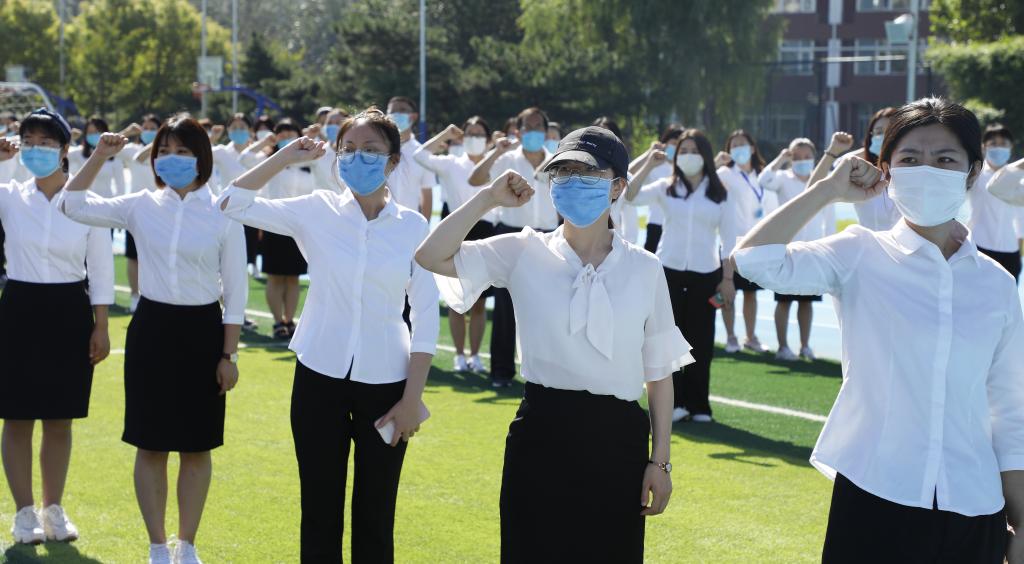 孙亚楠带领全体教师和学生在国旗下宣誓。在慷慨激昂的誓词中,师生感受到了新学期的希望,放飞了新学期的梦想。