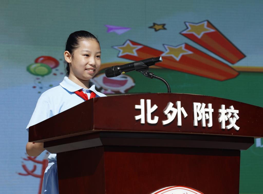 我校小学优秀毕业生代表凌懿德发言。她分享了自己在附校的成长历程,诚挚感谢学校的殷切关怀和教师们的辛勤付出,立志做好社会主义接班人,为伟大的中国梦贡献自己的力量。一年级的师生也表达了自己的心声,抒发对附校的热爱之情及对未来美好校园生活的憧憬。