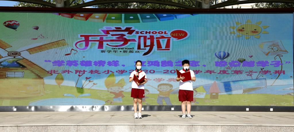 9月1日上午,我校小学在操场举行了“学英雄榜样,立鸿鹄之志,做卓越学子”主题开学典礼。国家督学、研究员、我校校长林卫民,党总支书记张继军,副校长高雁鸣,副校长于苒,副校长、初中执行校长杨磊,小学执行校长刘宏利,党总支委员、小学副校长李琳,行政中心主任谭畅,小学副校长孟娜,小学副校长孙亚楠,宿管中心主任李洪杰,援鄂国家医疗队队员、家长代表郭淼女士等校领导、嘉宾出席,小学校区全体教师及一、五、六年级全体学生参加,活动由小学副校长孙亚楠主持。