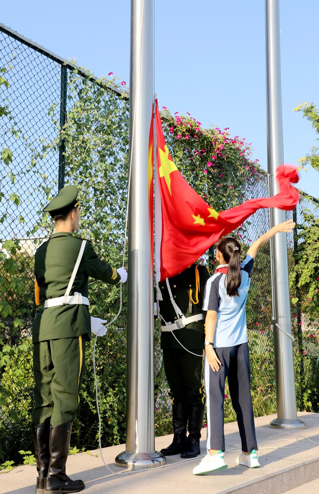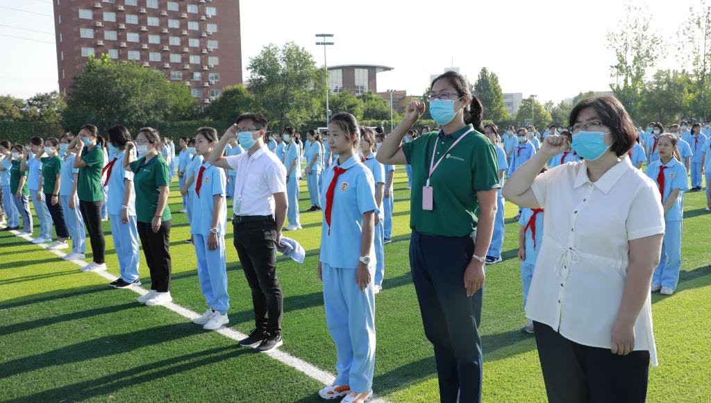 又一个硕果飘香、收获果实的季节,又一个祝福飞扬、充满期待的九月。在秋韵荡漾的日子里,我们迎来了第36个教师节。9月7日上午,我校中学举行“立德树人勇担当 尊师爱师恩难忘”教师节主题升旗仪式。本周主持升旗仪式的是来自初二(1)班的李昂和党思瑶同学,升旗手是李佳程同学。