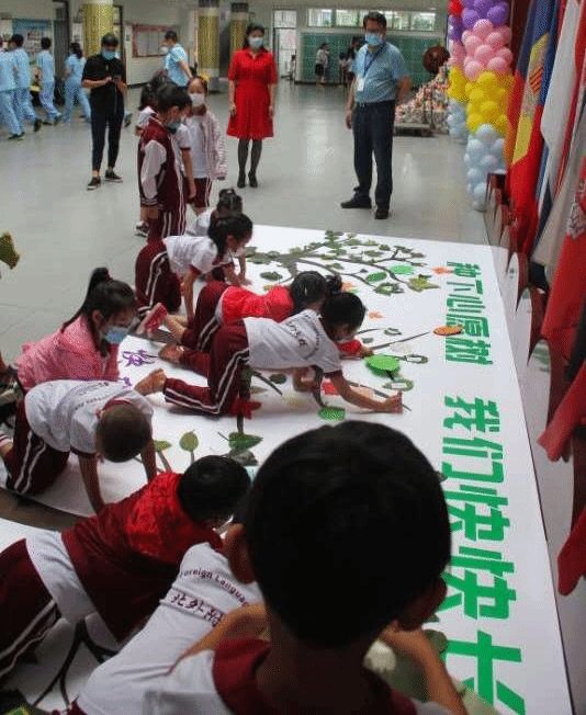 “入学仪式”是播种孩子们“成为小学生”自豪感的最强阵地。试学第二天,各班老师开始布置入学典礼的准备工作:孩子们或画或摘取树叶,写下入学心愿;制作心愿卡,和父母共同畅想六年后的梦想;小伙伴们手持校旗国旗在典礼彩排现场欢呼雀跃。
