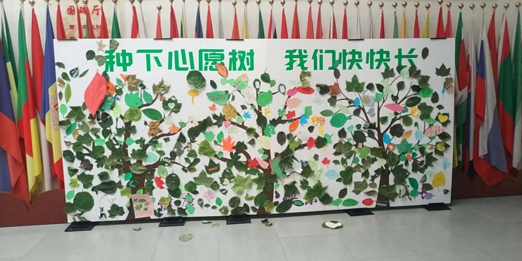 8月30日清晨,各班学生手持写满祝福和心愿的绿叶,郑重地贴到“成长树”上,好似心愿在树,与其共成长。有幸的是,林校长和刘校长都亲自参与了这项活动,共同见证小朋友的成长历程。
