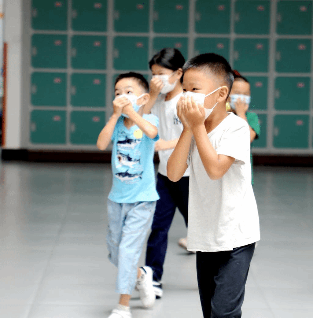 安全教育历来是学校教育的重要课程。我校从“敬畏生命”为教育起点,抓住新生试学的契机,将“安全教育”纳入必备课程。8月30日上午,小学副校长孙亚楠老师在国瑞厅门口拉响“防空警报”,一年级各班教师指导学生手掩口鼻,躬身前行,按照指定路线,有序疏散。