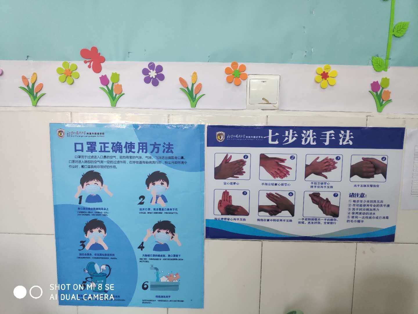 试学第一天,一年级各班教师利用课上、课间、加餐、午餐等时段,通过视频、示范、讲解、监督指导等方式向学生讲解正确洗手、使用口罩、打喷嚏和主动饮水等防疫知识,最大程度上规范学生防疫行为,保证孩子们的身体健康。