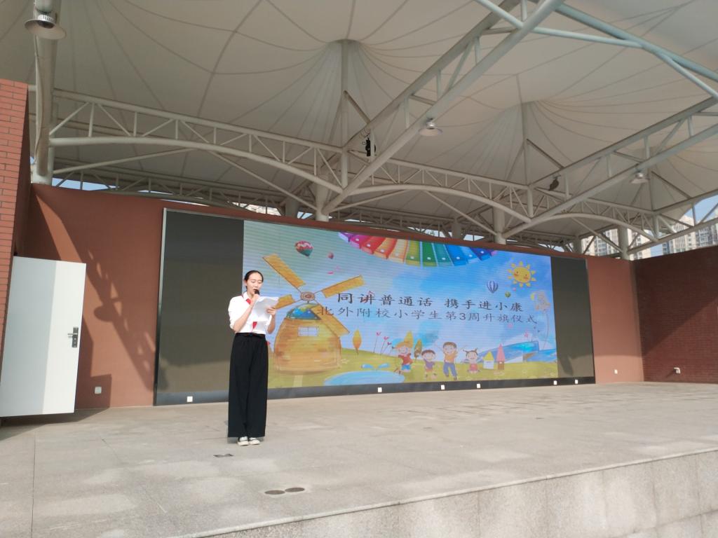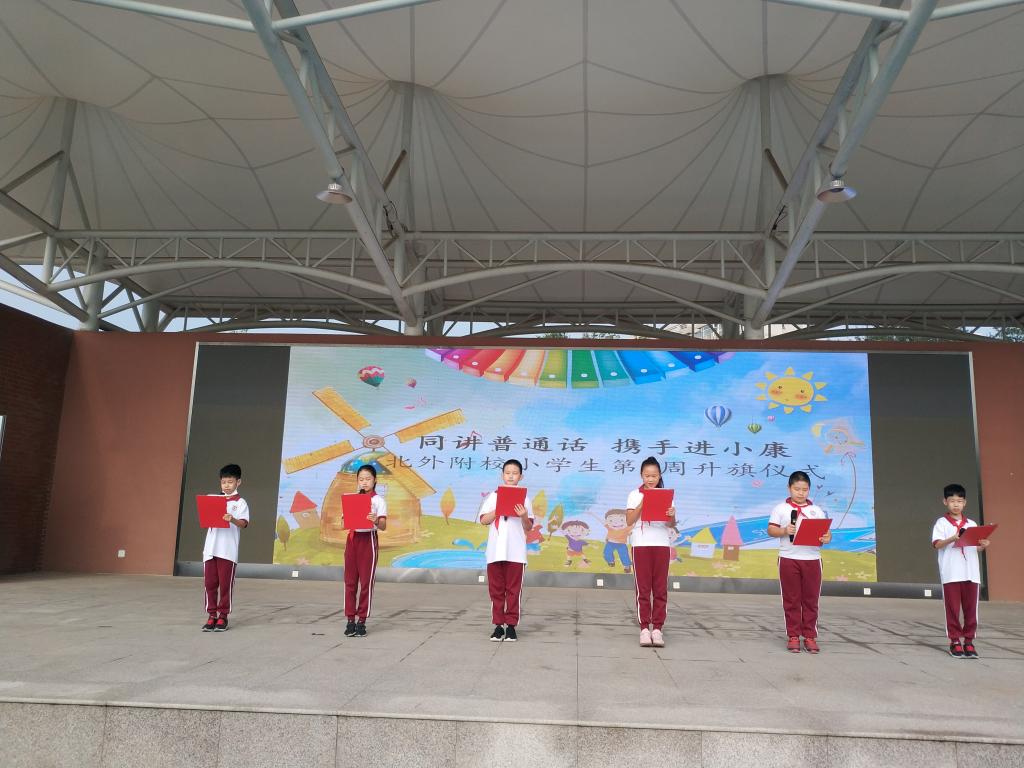 普通话是我国的通用语言,语言文字关系到国家的统一、民族的团结、经济的发展、社会的进步、历史的传承、文化的认同。2020年9月第三周是第23届全国推广普通话宣传周。我校小学精心组织了以“同讲普通话,携手进小康”为主题的升旗仪式活动,以此营造文明的校园语言环境,提高广大师生的普通话水平,更好地促进学校语言文字工作的发展。