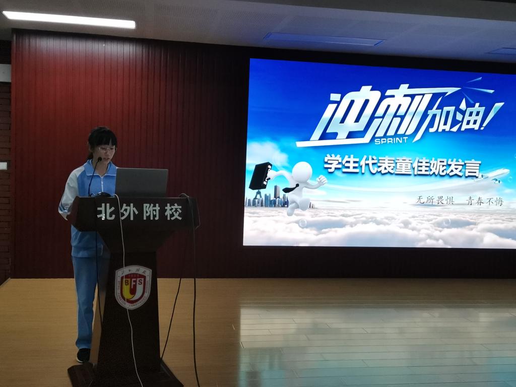 教师代表吴芳以慷概激昂的全英语演讲带给了学生震撼。吴芳给同学们提出了几点建议:要树立明确的目标,且要勇于尝试。学校生活是充满挑战的,希望同学们全力以赴,创造属于自己的辉煌。学生代表童佳妮从自身的角度分享了学习心得,她讲到学习态度、学习习惯、学习方法对于一个中学生的必要性;同时也鼓励大家在中考前夕鼓足干劲,奋力拼搏。