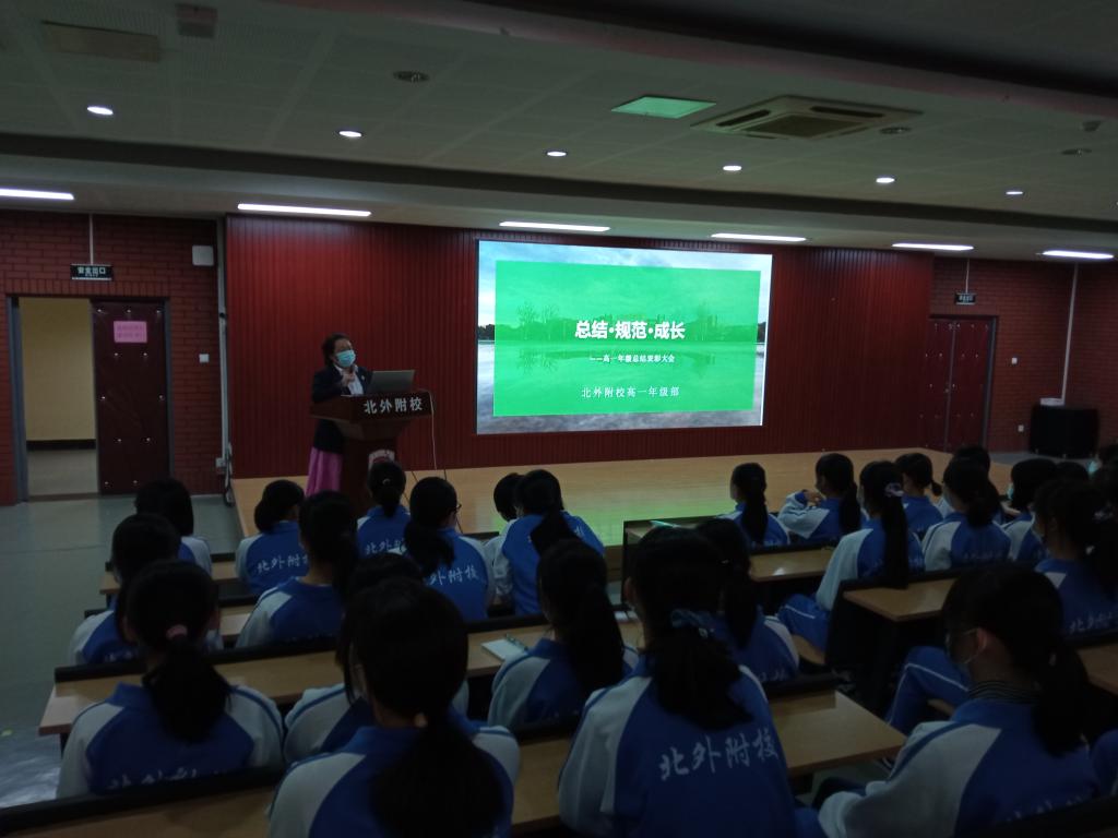 在大会的开始,同学们齐声注视着五星红旗高唱国歌,展现了高一年级独有的风采。学校为同学们开设大量竞赛课,满足了学生希望凭借竞赛参加自主招生的愿望。学校更开设了丰富多彩的选修课,如英语戏剧和木工等,让学生们在选修课程的学习中发掘自己的爱好,有了更清晰的前进方向。学校不仅对学习优异和进步显著的学生进行表彰,同时也对乐于助人、团结协作的学生们予以鼓励,注重学生成绩和品德同步发展。最后是对近期年级出现的一些恶劣现象的陈述与改正措施。彰显学校在培养学生全面自由发展的同时也制定了严格的规章制度。最近,年级里携带手机不上交、顶撞老师、散布负面言论的行为有所增加,李连秋老师对此也提出了批评,在最后对高一年级提出殷切希望。