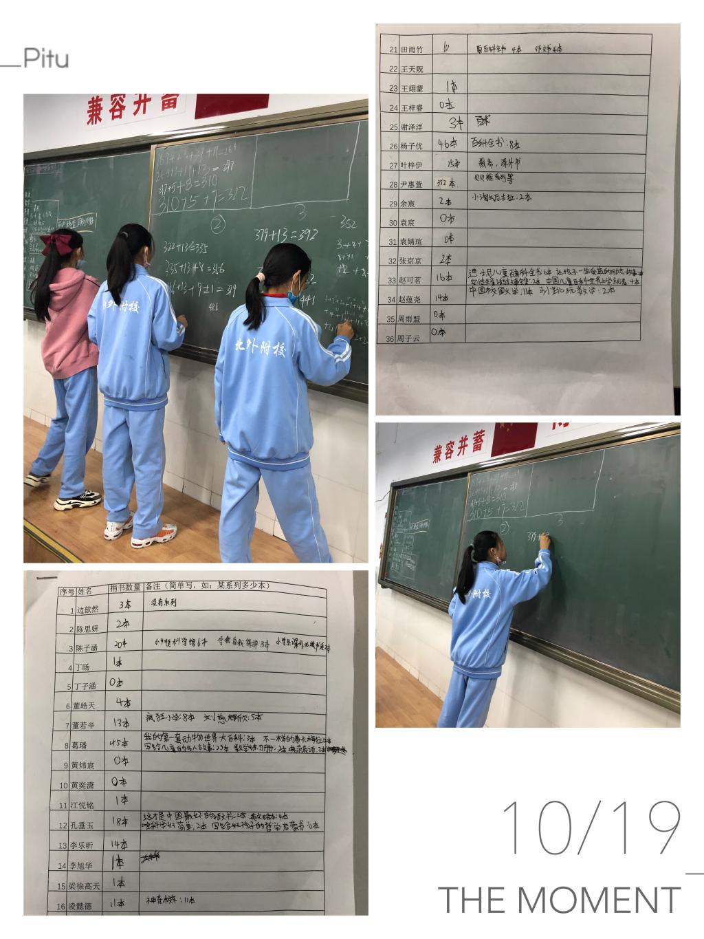 本次活动,班级学生除整理自己闲置书籍外,还分了统计小组,主持组、宣传组和后勤组,分别负责书籍统计、主持词撰写、捐赠照片视频采集制作、书籍后期装箱打包邮寄等工作。经过近一个月的筹备,于10月19日班会时间举行了书籍捐赠仪式。捐赠仪式设计不同环节,留给学生充分的探讨时间,让捐赠活动不仅能够帮助乡村学生,更借此培养班集体凝聚力和向心力。