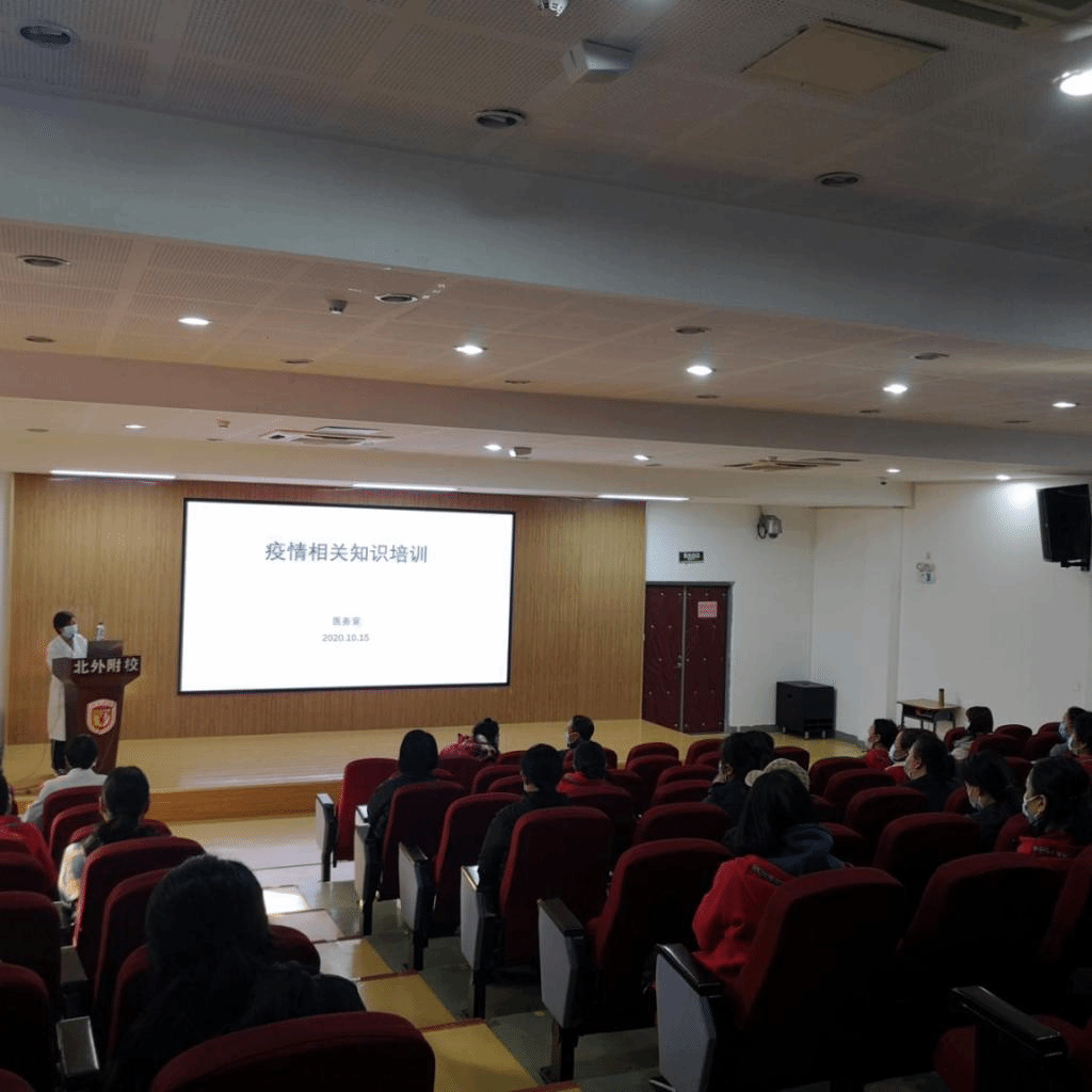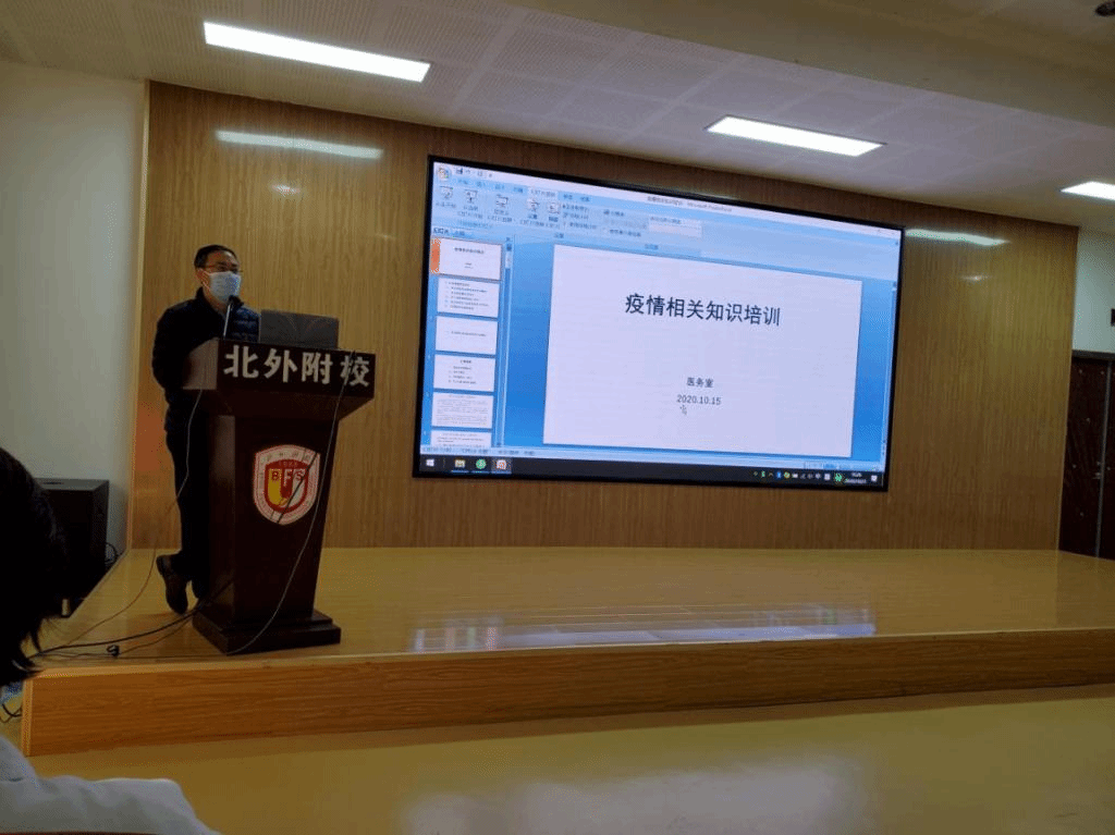 10月21日,宿管中心在第一阶梯教室进行了疫情防控相关知识培训,我校副校长高雁鸣、宿管中心主任李洪杰、全体校医及生活老师参加了此次会议。