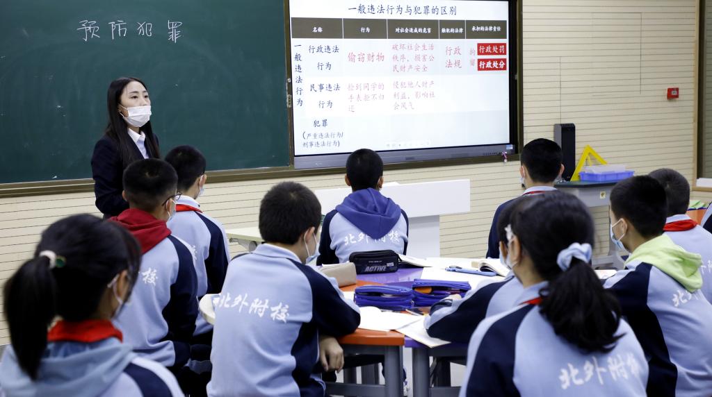 在课堂教学环节,我校青年教师要丽智和郭丽两位老师分别展示了《网上交友新时空》和《预防犯罪》两堂新授课。随后,初中文综组教研组长伊广花从教师队伍、教研活动、课题研究、中考复习、初高思政一体化教研及学科活动几个方面介绍我校初中文综组的整体情况。