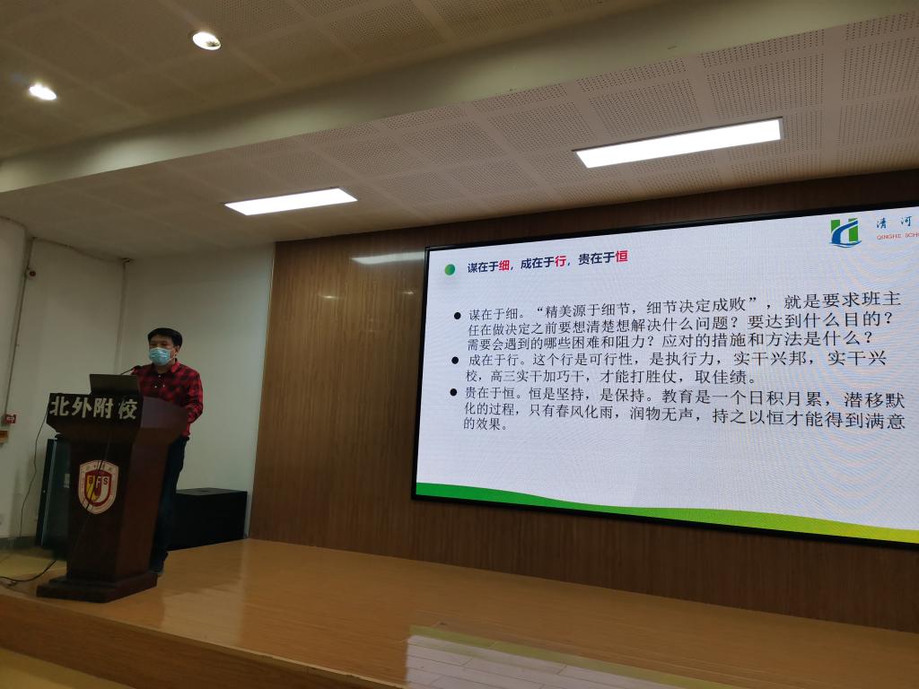 10月23日下午四点半,高中校区德育研讨会在一阶召开。大会由高中德育副主任闫盼盼主持,高中全体教师参加此次会议。会议特别邀请了清河学区资源统筹部部长张利民老师,由他给老师们做了题为“谋在于细,成在于行,贵在于恒”的报告。