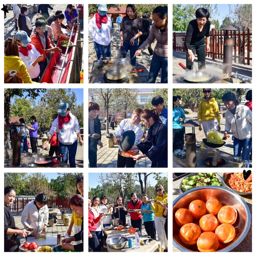 中午饭是团队协作下厨,户外野炊,我们做了西红柿炒鸡蛋、香菇油菜、醋溜土豆丝……第一次吃这么香的午饭,大家分工协作,洗菜、切菜、炒菜……以天地为室,大家谈笑风生,晒着太阳,吃着午餐,有种回到学生时代的感觉。