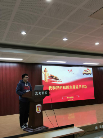 10月23日下午,我校初中党支部在二阶组织开展了“我和我的祖国”主题党日活动。参加本次活动的有我校副校长、初中党支部书记杨磊及初中校区党员、流动党员和入党积极分子,活动由支部委员于颖同志主持。