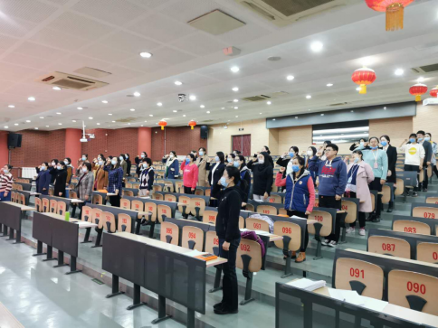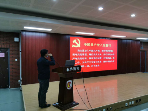 面对鲜红的党旗,杨磊作为领誓人,带领党员们一起高举右手,再次庄严宣誓。“我志愿加入中国共产党……随时准备为党和人民牺牲一切,永不叛党。”铿锵有力的誓词,强烈震撼着在场的每一位党员,一字一句,神圣而豪迈,体现了党员同志们对中国共产党的无限忠诚。随后,大家观看了全国抗击新冠肺炎疫情表彰大会视频节选和抗美援朝纪录片《谁是最可爱的人》。不论是当年抗美援朝中最可爱的人还是当下为了抗击新冠肺炎疫情而倾心付出的医护工作者,他们为国奉献、舍己为人、舍小家为大家的精神都深深地感动和激励着每一位在座的党员。