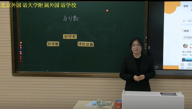 六年级教师牛桂欣执教《百分数的认识》一课。牛桂欣老师课前组织学生寻找生活中的百分数,让学生感受百分数与生活的密切联系,并且在寻找过程中掌握百分数的读写方法。之后从生活中的情境——购物中的好评率出发,使学生在探究过程中感受百分数表示两组数据之间的“关系”,缺一不可,牛桂欣老师为学生创设自主探索、合作学习的机会,使学生在生生对话、师生对话中明晰百分数的意义与优越性,学生在线段中找出百分数并且通过比较大小,了解百分数刻画数据程度。最后,回到学生自己寻找的百分数,牛桂欣提出问题:“通过学习,你想对你的百分数说些什么?”,使学生感受生活与数学密不可分,再次感受百分数的价值。