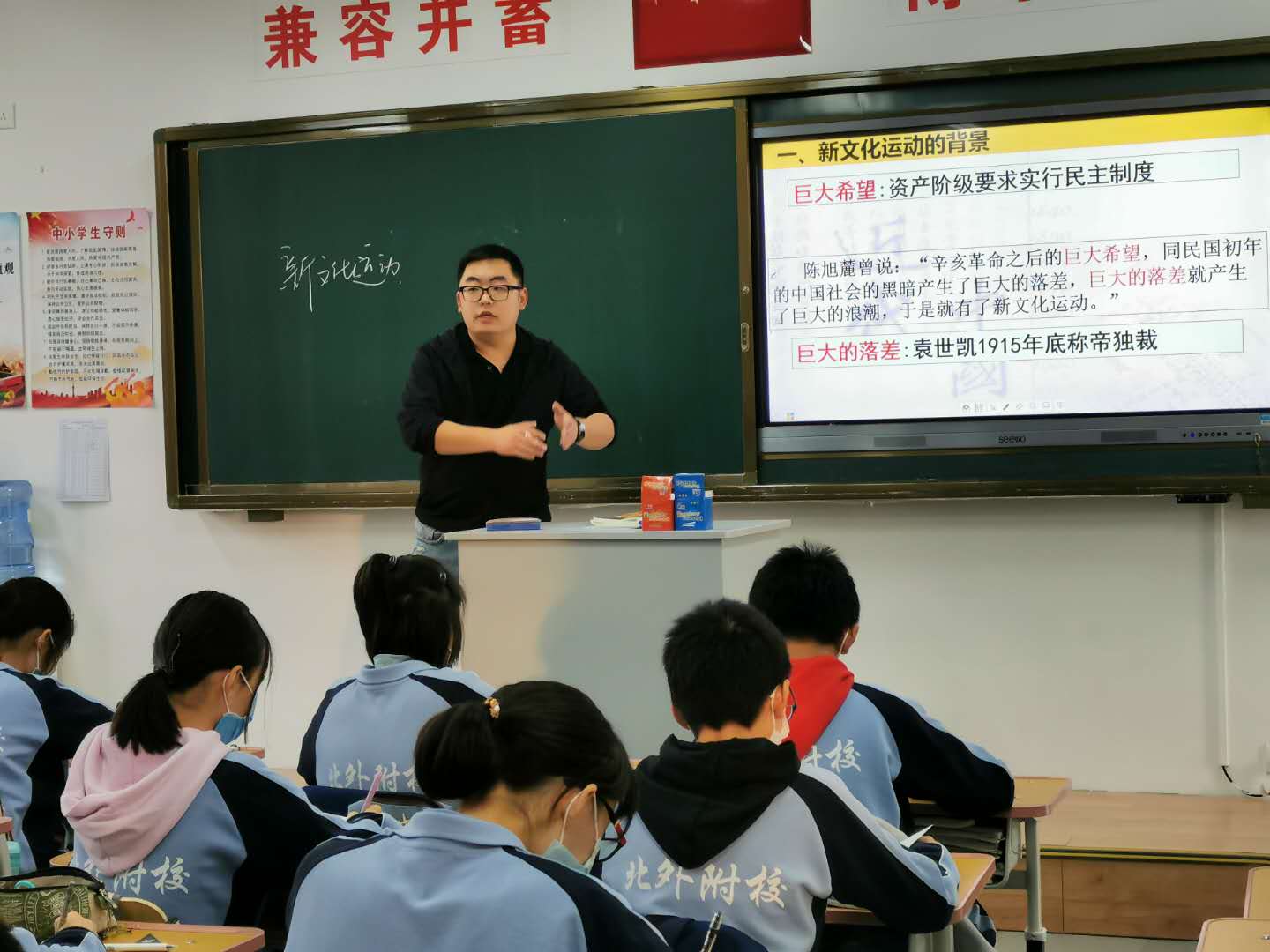 10月28日第4节,历史备课组长何宇老师在初二2班上了《新文化运动》。本节课依托大量史料,创设高效的学习情境,从而构建详实的知识结构。在授课过程中学生在分析问题的同时,掌握了分析、概括等历史学科方法。在师生互动过程中,不仅学生能得到新知,开拓思路,教师也通过预设问题,引导学生思维,注重将过去的历史和今天的生活紧密结合,使学生认识到以史为鉴的重要意义,落实了学科核心素养。