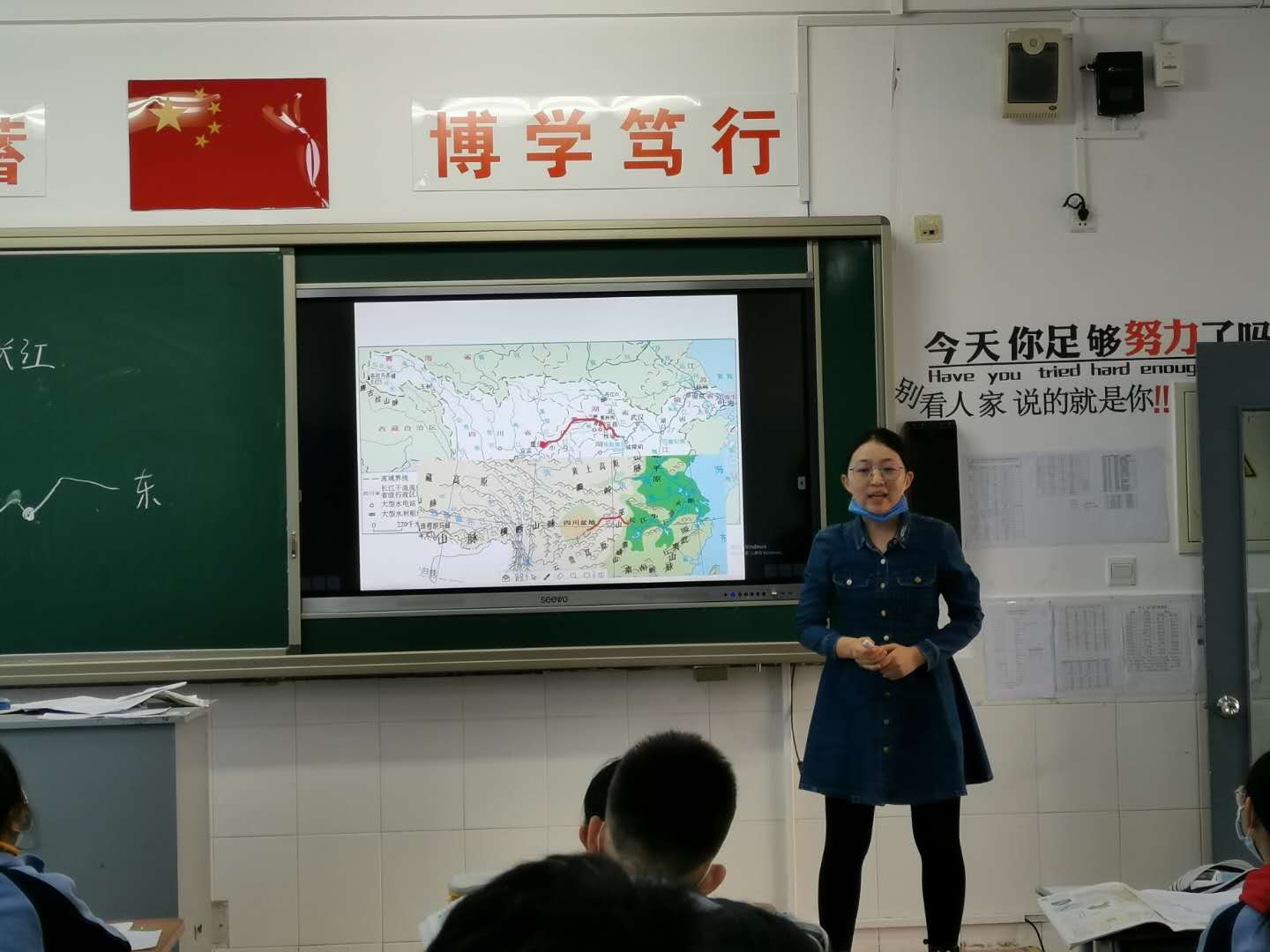 10月27日下午第6节,地理备课组长王琦静老师在初二7班进行了《诗词话长江》这一课题,通过美丽的长江视频导入调动了学生学习的积极性,然后通过用古人描绘长江不同河段的诗和长江流域图,让学生自主学习完成长江上游、中游、下游三个河段的分界点和河流特点,在此基础上,通过学生分组讨论突破了长江的开发这一重难点。本节课王老师将传统文化与地理课内容相融合,通过学生自主学习和分组讨论培养学生的获取信息,综合分析问题的能力。