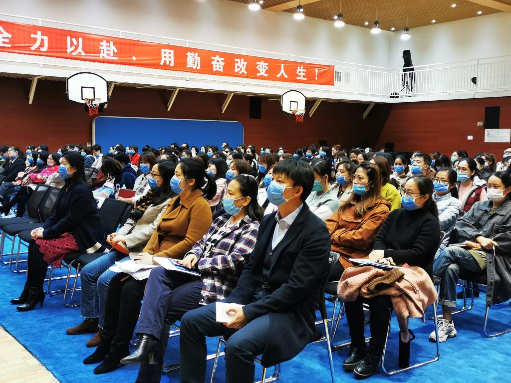 首先,张书记号召和带领大家学习了习近平总书记在“2020年秋季学期中央党校(国家行政学院)中青年干部培训班开班式“上发表的重要讲话。讲话中提到一条很重要的经验,勉励年轻干部提高七种能力:政治能力、调查研究能力、科学决策能力、改革攻坚能力、应急处突能力、群众工作能力、抓落实能力。张书记提出,习主席的此次讲话内容对我们每一位班主任、每一位科任教师都是有益的,它为我们教师的教育教学及班级管理指明了方向,张书记结合教育教学实际深入浅出地为老师们详细阐述与解读。比如,教师们要坚持教育教学的方针,具备一定的政治定力和站位,为党育人,为党育才;了解班级每一位学生及家长的情况,保证有效的家校沟通;了解儿童心理学及教育教学规律,把握不同年级学生的教育教学特点;合理有效地处理和应对诺如病毒、学生意外等突发事件。张书记重点强调,教师们要抱着目标意识、问题意识和结果意识开展教育教学工作,助力我校教育教学高质量发展。