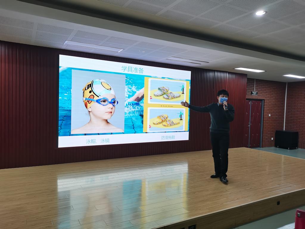 为了落实体育改革的要求,传承附校的体育精神,进一步增强学生的锻炼意识,丰富我校学生运动的多样性。我校六年级开设游泳课程。开课在即,11月2日下午六年级全体师生在第二阶梯教室进行游泳课安全及健康知识讲座,部分体育老师和中学游泳课老师参会。小学副校长孙亚楠主持会议并作知识讲座。
