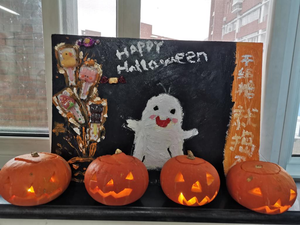 孩子们身穿各种漂亮的服装,和老师一起精心装扮着教室,在欢快的万圣节音乐中尽情游戏着,欢乐的神情洋溢在孩子们的脸上。与此同时,老师们通过播放卡通故事,让孩子们对万圣节有了初步的了解;“优才俱乐部”的老师们与保育老师一同协助小朋友们,分组完成DIY南瓜灯,加深了孩子们对节日元素的印象。