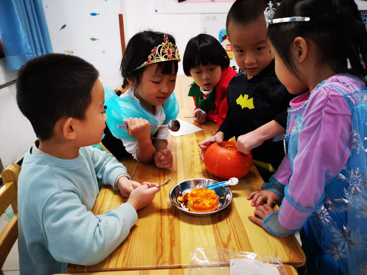 万圣节是孩子们纵情玩乐的时候,它在小朋友们的眼中是一个充满神秘色彩的节日,为了让幼儿进一步了解西方的节日文化,10月30日,我园各班在“优才俱乐部”时间,分别开展了不同形式的万圣节活动。