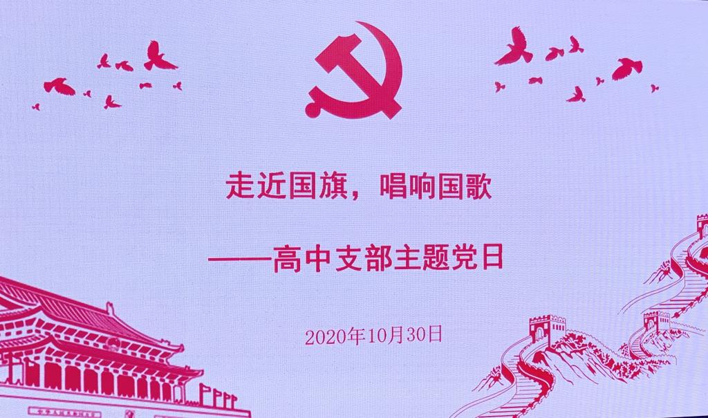 10月30日,我校高中党支部在一阶会议室开展了以“走进国旗,唱响国歌”为主题的党日活动,我校党总支委员高雁鸣,高中党支部书记王静及高中校区全体党员和积极分子参加了本次活动。