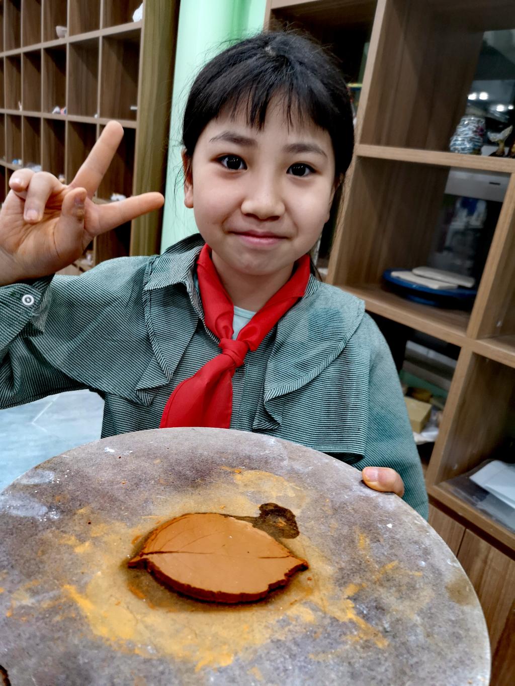 选修课的泥塑和藏书票,也是异彩纷呈。泥塑选修课上,学生们用泥塑“拓印”的方法,更贴近自然的艺术形式,拓出树叶的美丽的外形,感受物种的多样性,认识多样的美。 藏书票是小型版画,被誉为“纸上宝石”。初学藏书票的孩子们以刀(木刻刀)代笔,用阴刻、阳刻相融合多样的表现形式和稚拙童趣的刀法,同样制作出“秋之美”主题的艺术作品。